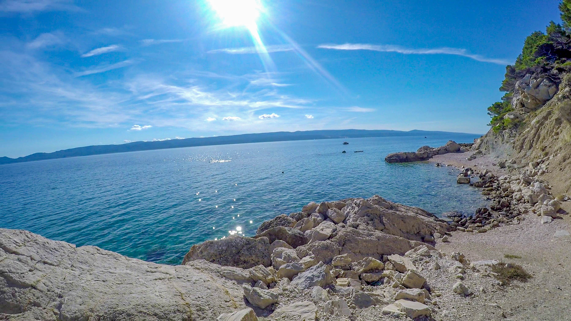 Die abwechslungsreiche Küstenlinie von Marušići bietet unzählige, kleine und teilweise versteckte Fels- und Kieselbuchten, die zum Baden einladen. Daneben gibt es noch einige größere Strandabschnitte und natürlich weitere Bademöglichkeiten in den Nachbarorten entlang der Omiš Riviera.