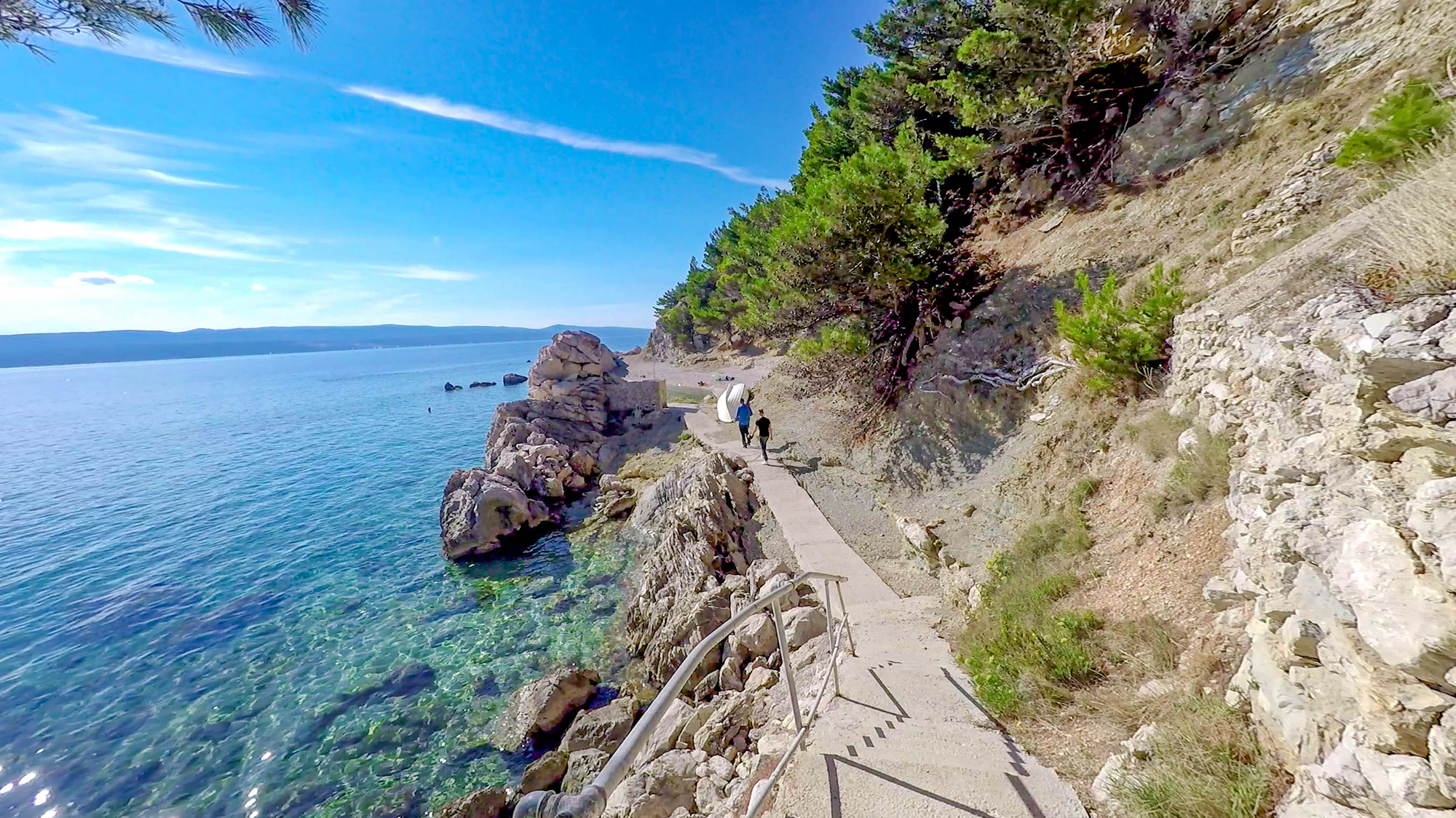Der Strand Kajak liegt am Ortsanfang von Marušići, wenn man von Mimice kommt. Der Kajak Strand, der kleine Kiesbuchten und größere Felsen bietet, ist perfekt für Ruhesuchende und aktive Gäste, die gerne mit SUP oder Kajak die Küste erkunden möchten. Equipment, Getränke und ggf. Schattenspender muss man selbst mitbringen, da es leider keinen Verleih von Sonnenschirmen und Equipment sowie kein Restaurant oder Bar am Strand Kajak gibt.