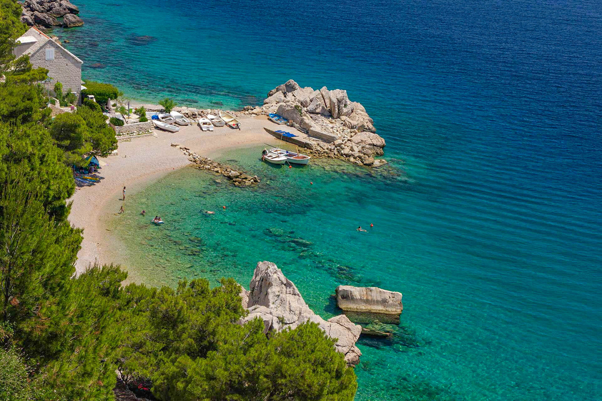 Die Riviera von Omis bietet eine Reihe an herrlichen Badestränden, wie den schönen Strand Brzet. (Foto: Tz Omiš; visitomis.hr)
