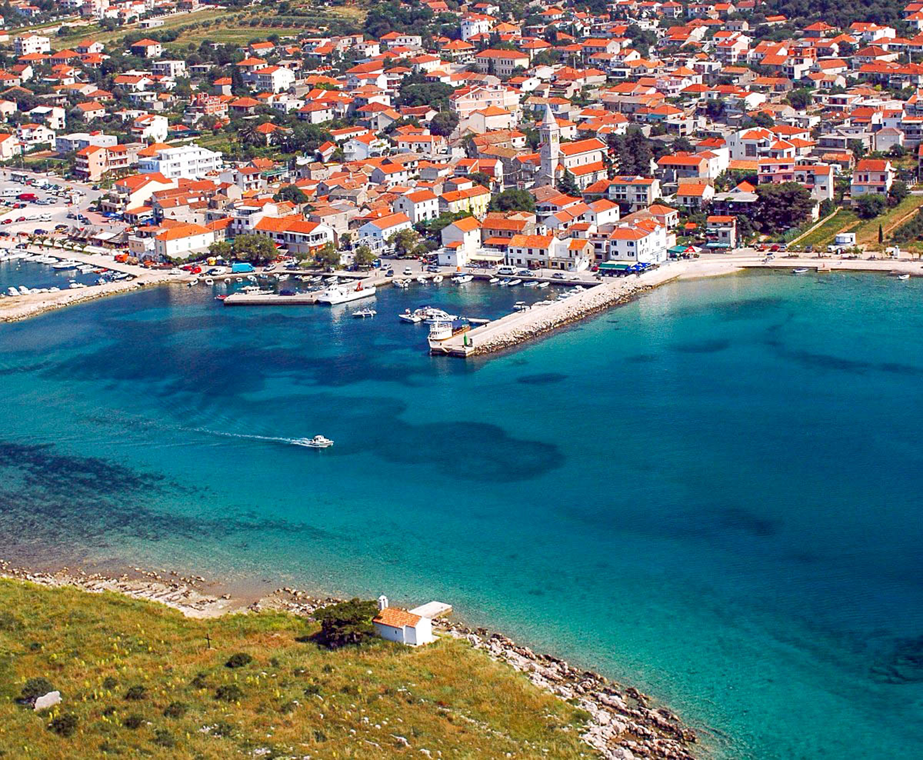 Die reizende Promenade verbindet den kleinen Hafen mit dem lebendigen Zentrum. Sie eignet sich ideal für entspannte Spaziergänge mit Blick auf die Küste, während Cafés und kleine Geschäfte dem Ort eine lebendige Atmosphäre verleihen. Im Zentrum mischen sich traditionelle, dalmatinische Steinhäuser, mit modernen Akzenten und schaffen eine harmo- nische Kulisse. Abends verwandelt sich der Ort in eine stimmungsvolle Flaniermeile, während aus den Lokalen verlockende Aromen nach außen strömen und zum Verweilen einladen.