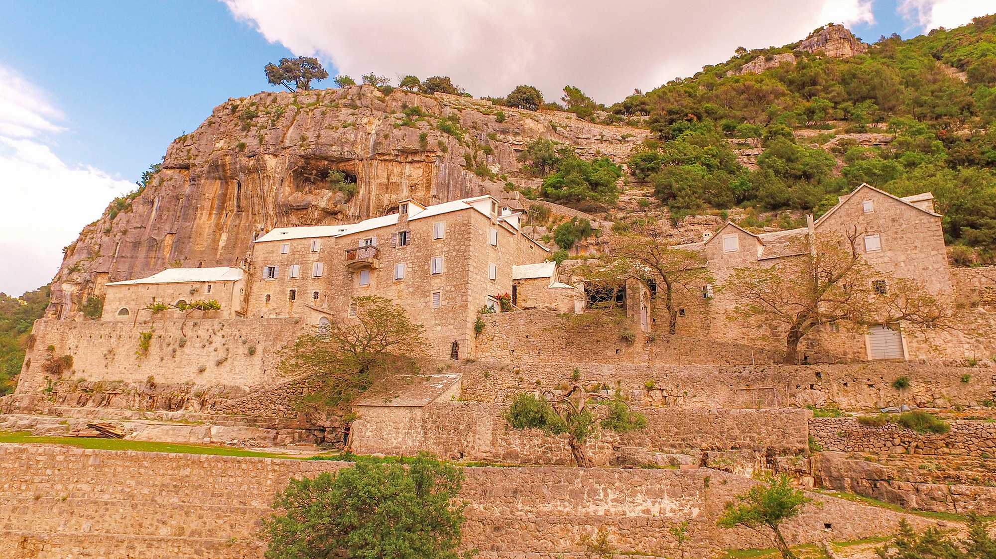 Der beeindruckende, historische Klosterkomplex wurde einst in eine steile Felswand gebaut und schmiegt sich nahtlos, fast unsichtbar und gut geschützt, in die Hänge des Tals und der Umgebung ein. (Foto: Croatia.hr; Zoran Jelaca)