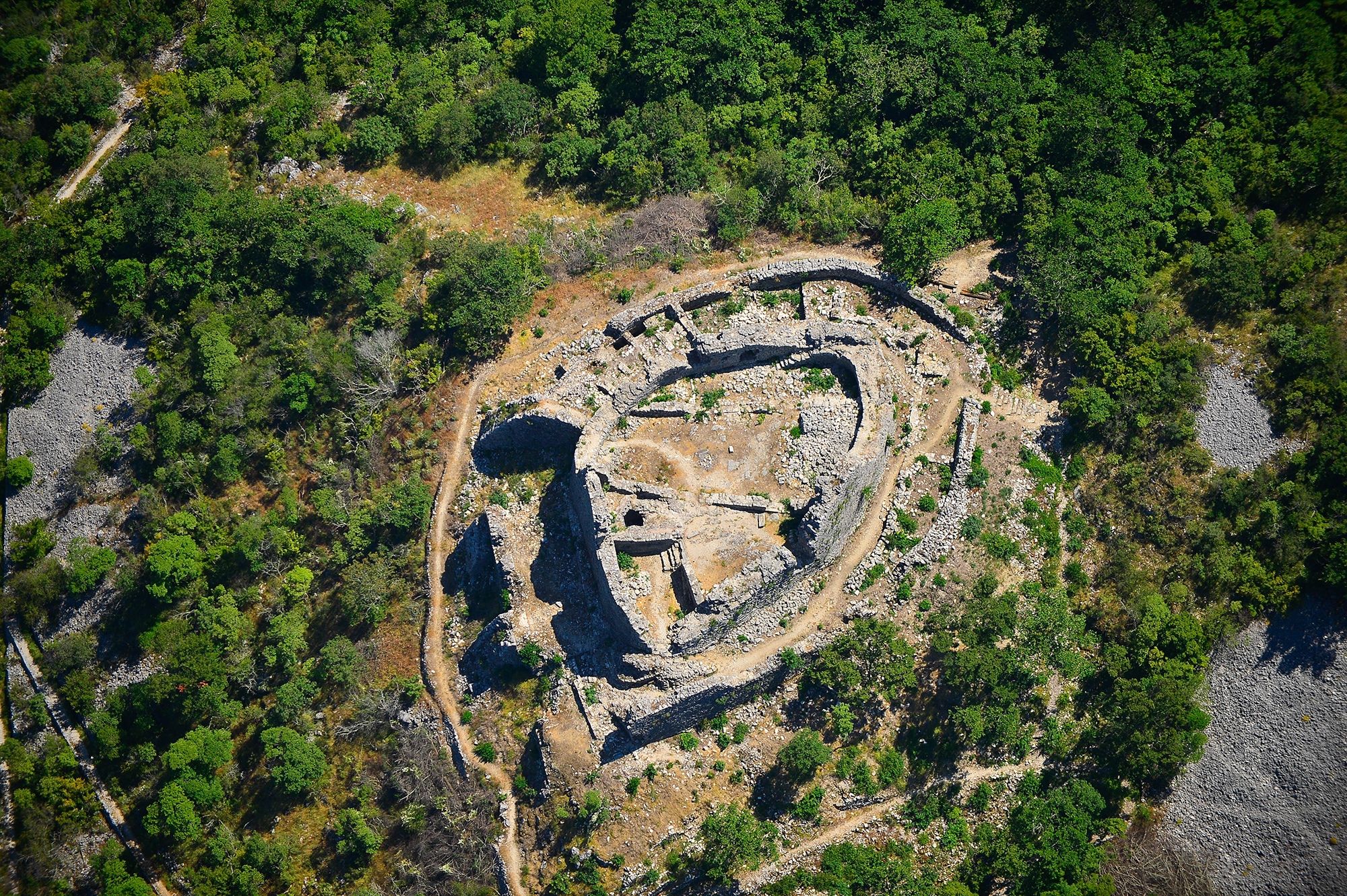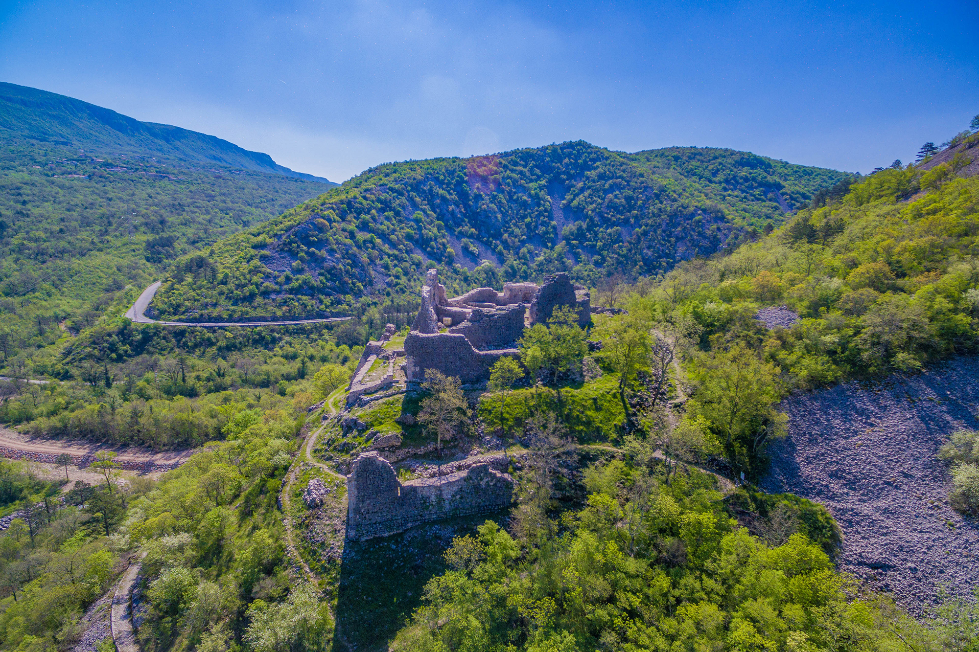 Luftaufnahme von der Burgruine Badanj, die oberhalb des Flusses Dubračina, unweit von Crikvenica liegt. (Foto: Tz Crikvenica; rivieracrikvenica.com)