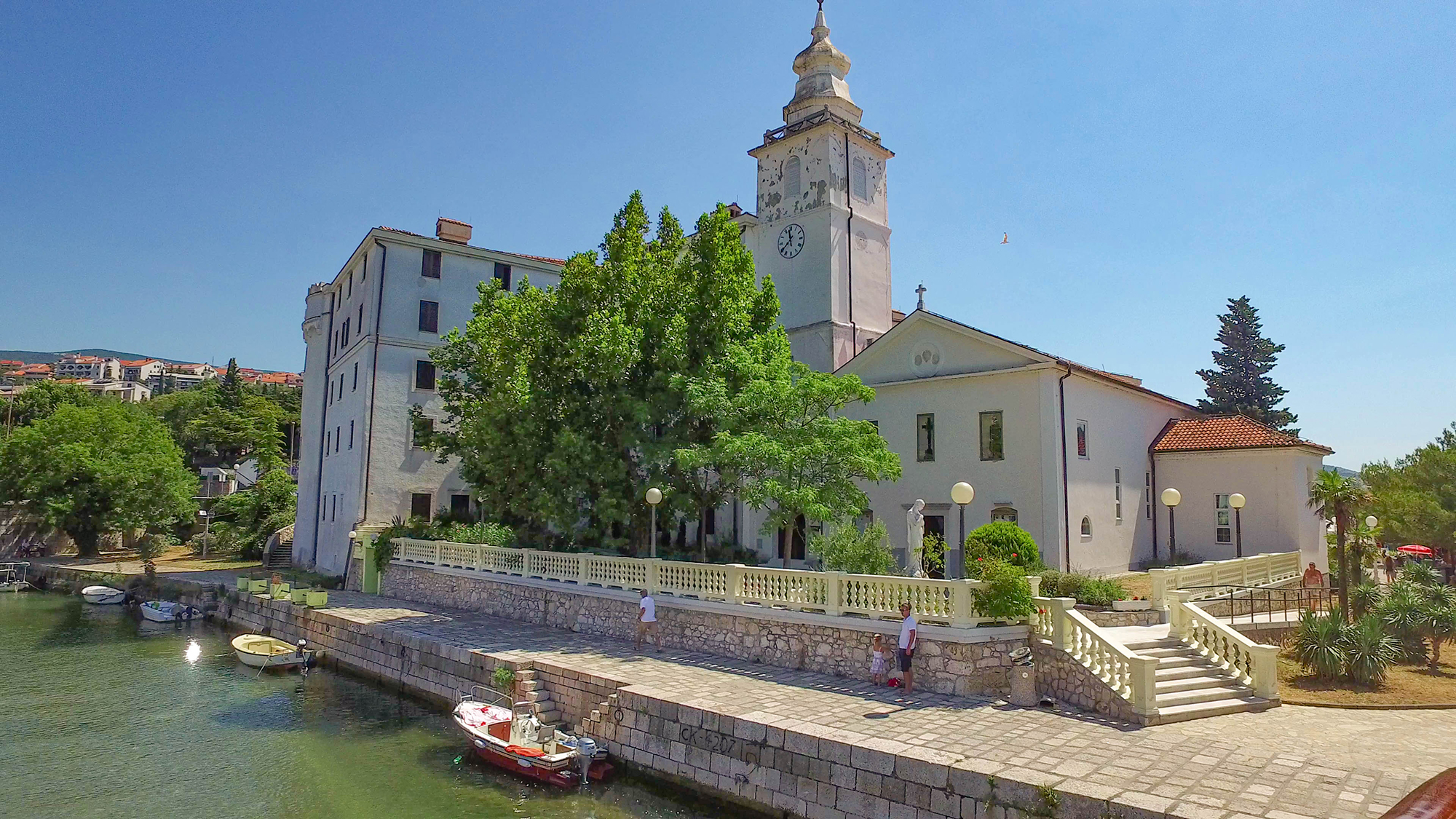 Die imposante Kirche der Hl. Maria Himmelfahrt liegt im Herzen von Crikvenica und bildet das spirituelle Zentrum der Stadt. Ihr Ursprung reicht bis ins 15. Jahrhundert zurück, als hier das Paulinerkloster Paulinovac gegründet wurde. Das imposante Bauwerk mit seinem Glockenturm steht heute an der Stelle des ehemaligen Klosters und ist von gepflegten Gärten umgeben. Die Kirche prägt das Stadtbild und erzählt von der langen religiösen und kulturellen Geschichte Crikvenicas, die eng mit den Paulinern verbunden ist.