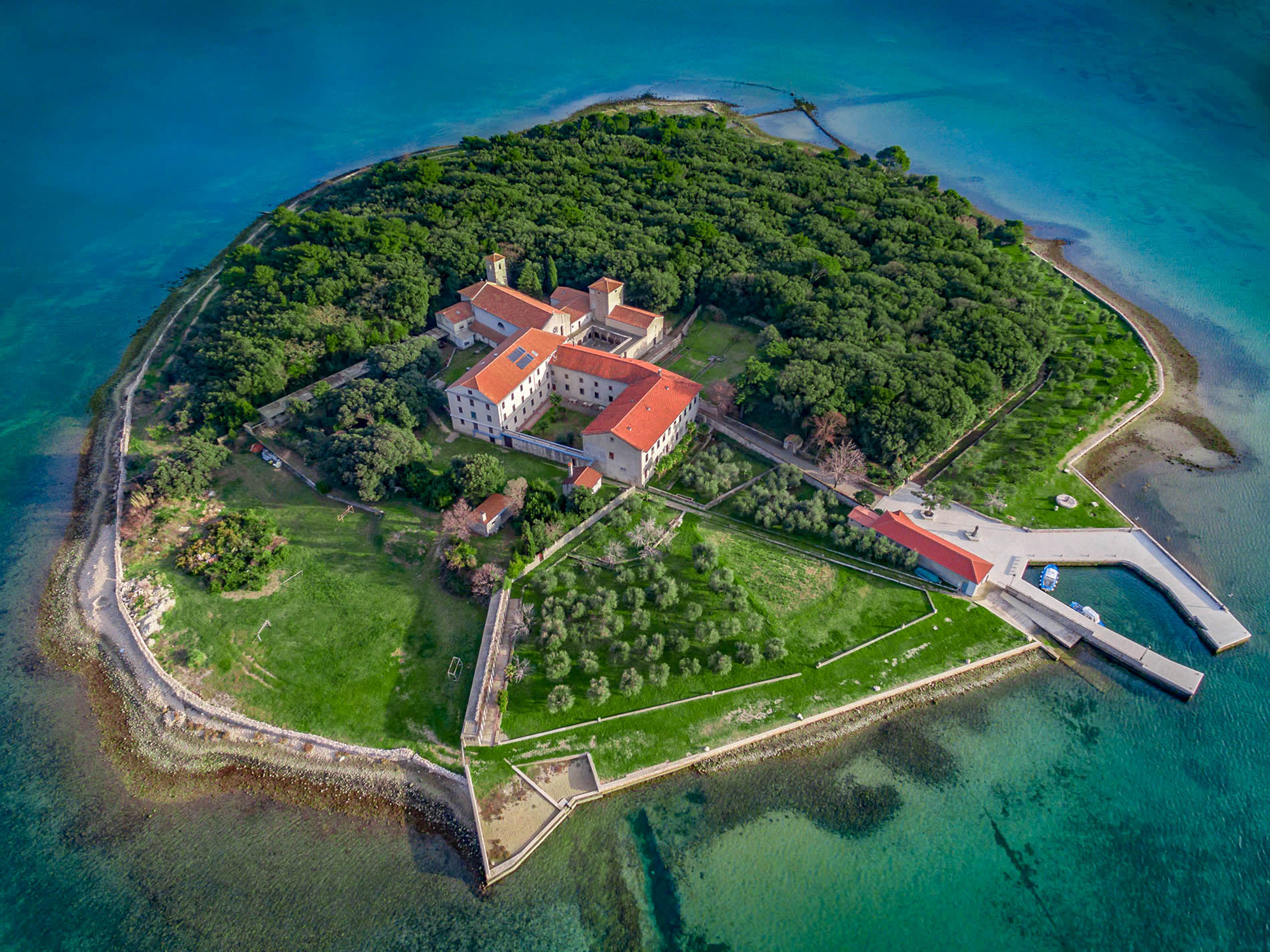 Inmitten der Bucht Puntarska draga befindet sich die Insel Košljun mit dem Franziskanerkloster. Ausflüge werden u.a. ab Punat angeboten. (Foto: Tz Punat, Molten)