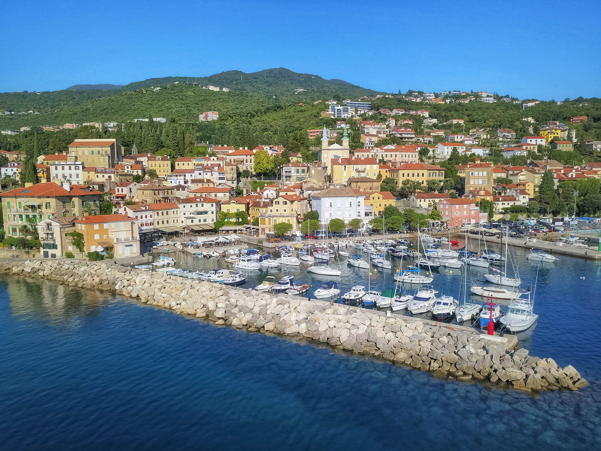 Die Altstadt von Opatija besticht durch ihre Architektur aus der Zeit der Donaumonarchie. Während das Zentrum von herrschaftlichen Hotels geprägt ist, zeigt der Ortsteil Volosko mit seinen engen Gassen seinen ursprünglichen Charakter. Ein markanter Punkt im Stadtbild ist die Statue Mädchen mit der Möwe, die auf einem Felsen vor der Küste steht. Direkt an der Uferlinie verläuft zudem der Lungomare, ein zwölf Kilometer langer Küstenweg, der die historischen Bauwerke entlang der Adria verbindet und das Stadtbild prägt.