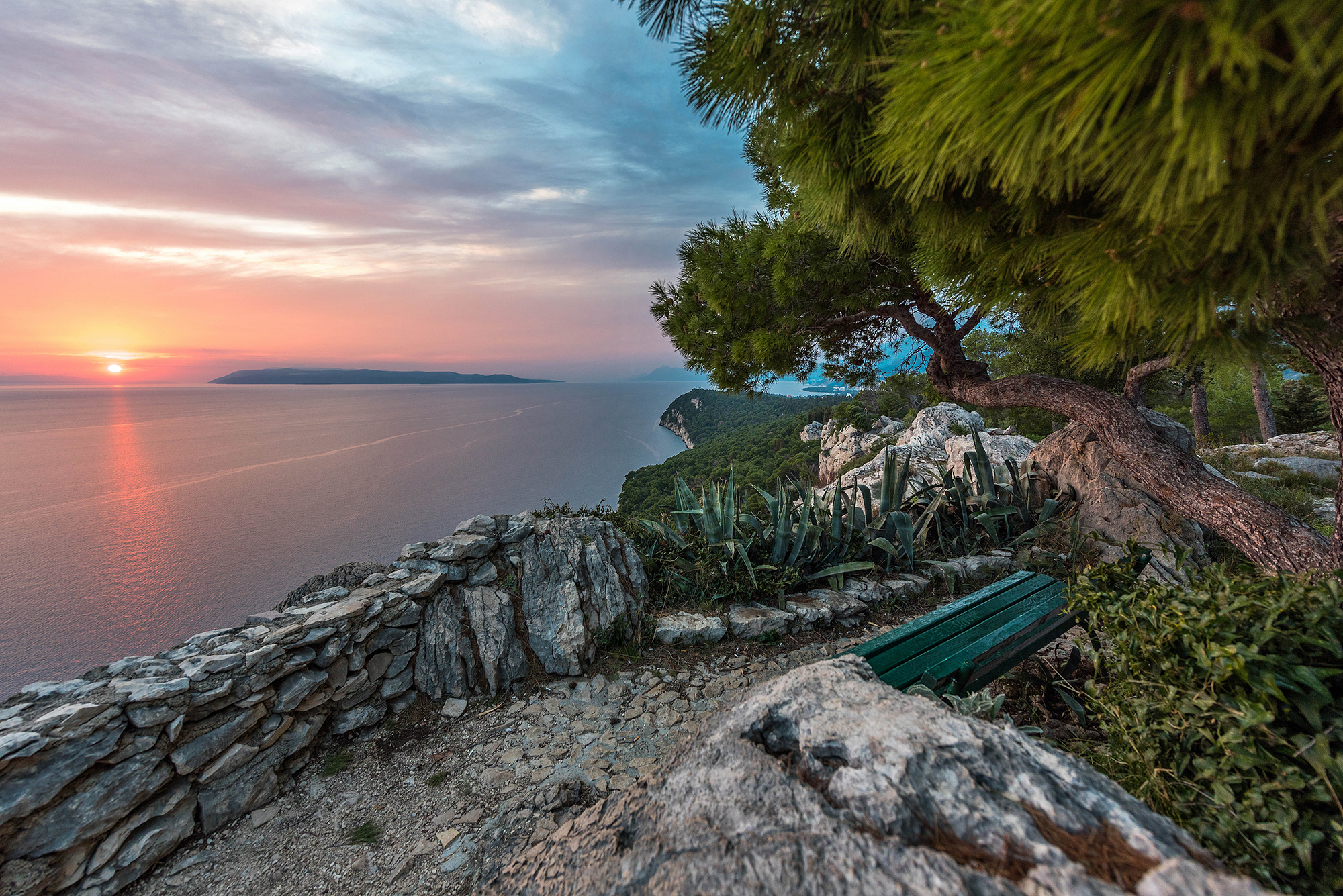 Schöne Aussicht auf das Kap Osejava bei Sonnenuntergang, vom Park šuma Osejava. (Foto: TZG Makarska; Matko Begović; makarska-info.hr)