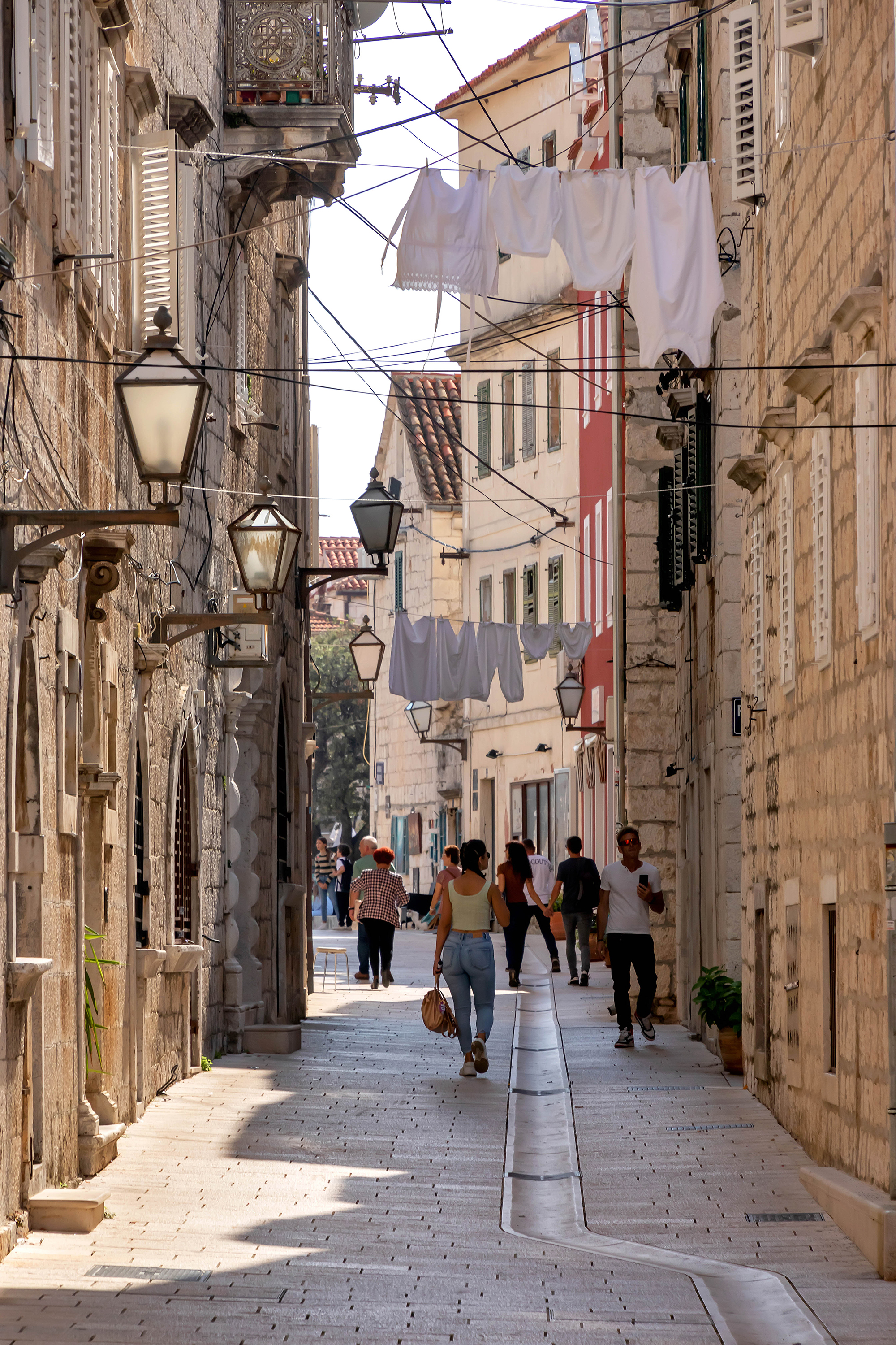 Kalalarga, die lange Gasse im Herzen der Makarska Altstadt, führt als lebhafte Hauptstraße durch ein Labyrinth aus steinernen Häusern mit barocken Portalen und geschnitzten Balkonen aus venezianischer Zeit. Sie verbindet die Riva-Promenade mit dem Kačićev Trg, vorbei an versteckten Höfen, Boutiquen und Galerien. Straßenkünstler sorgen für eine ausgelassene Stimmung, während Seitengassen alte Wohnhäuser, kleine Plätze und ruhige Passagen verbinden und den ursprünglichen Charakter des historischen Stadtkerns bewahren.
