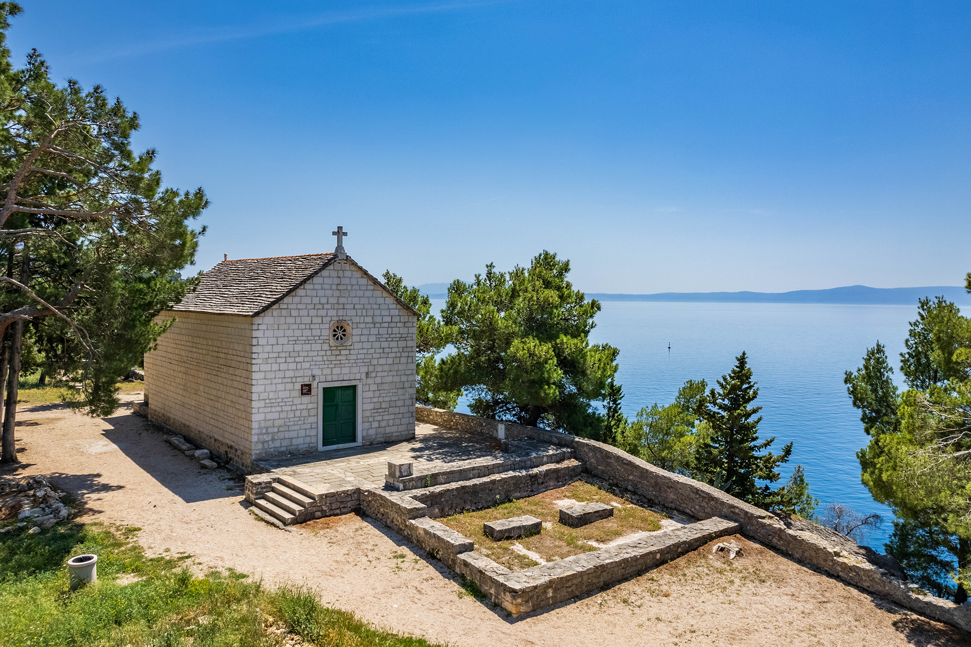 Über die Halbinsel Sv. Petar führen zahlreiche Wander- & Spazierwege, über die man u.a. zur kleinen Kirche Sv. Petar gelangt. (Foto: TZG Makarska; L33T digital agency; makarska-info.hr)