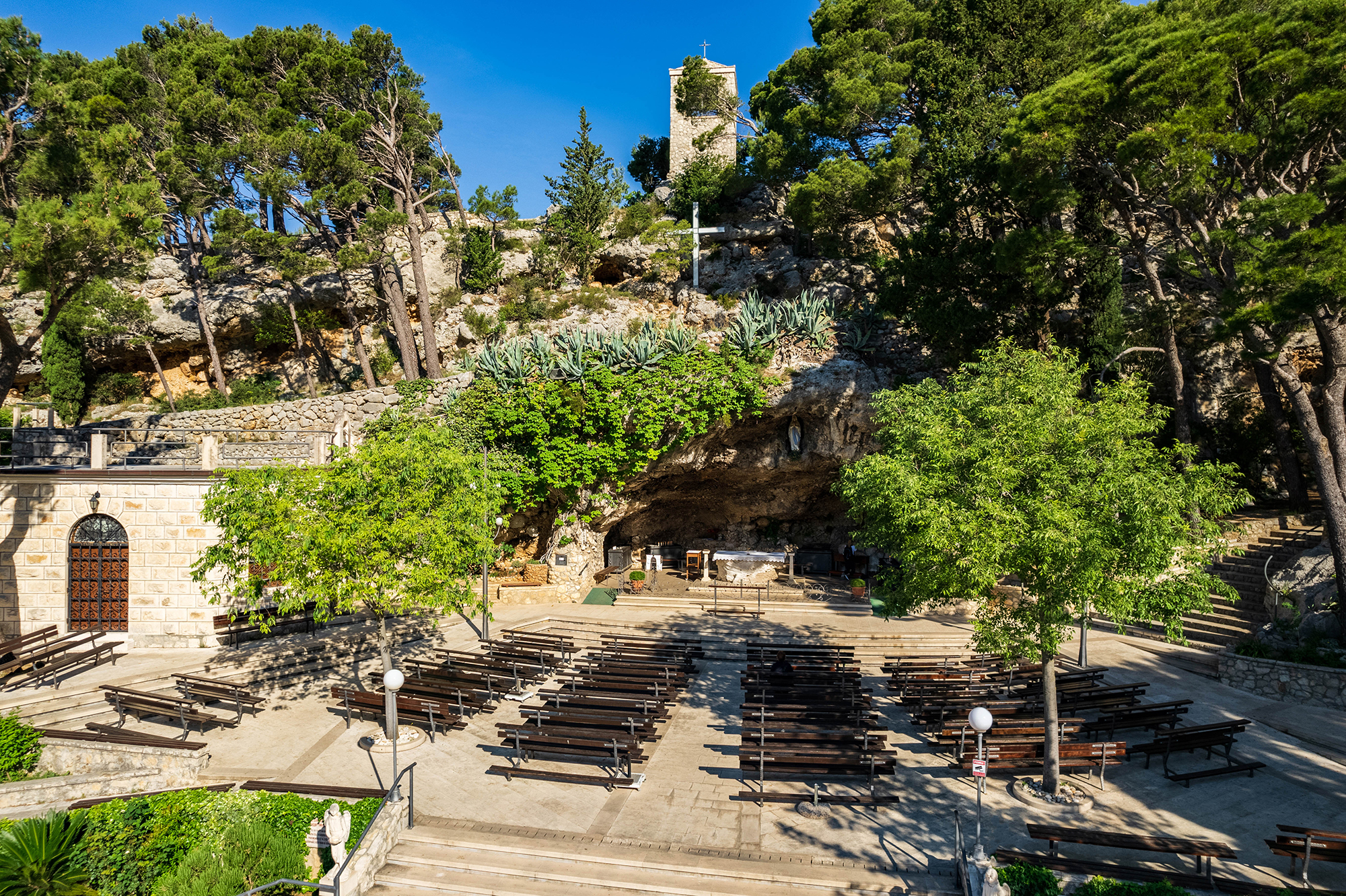 Der Wallfahrtsort Vepric liegt westlich von Makarska und lockt als kroatisches Lourdes mit einer natürlichen Grotte und ist umgeben von Pinienhainen und einem plätschernden Bach. Bischof Juraj Carić gründete es 1908, inspiriert von Lourdes, und fand hier seine letzte Ruhestätte. Pilger durchwandern den Kreuzweg mit 14 Stationen, beten in der Kapelle vor der Marienstatue oder am Freialtar, genießen die Stille in Beichtstühlen. Besonders beliebt sind Feste am 11. Februar, 25. März, 15. August und 8. September.