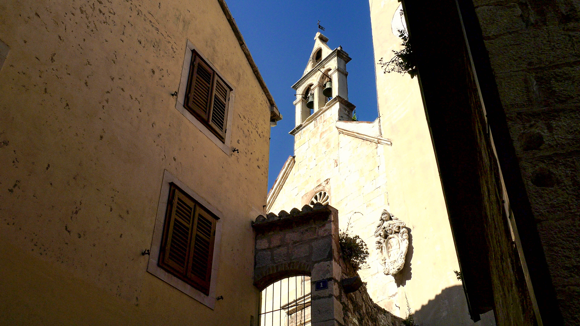 Blick auf die Fassade der kleinen Kirche des Hl. Geistes in der Altstadt von Omiš. (Foto: Kroati.de)
