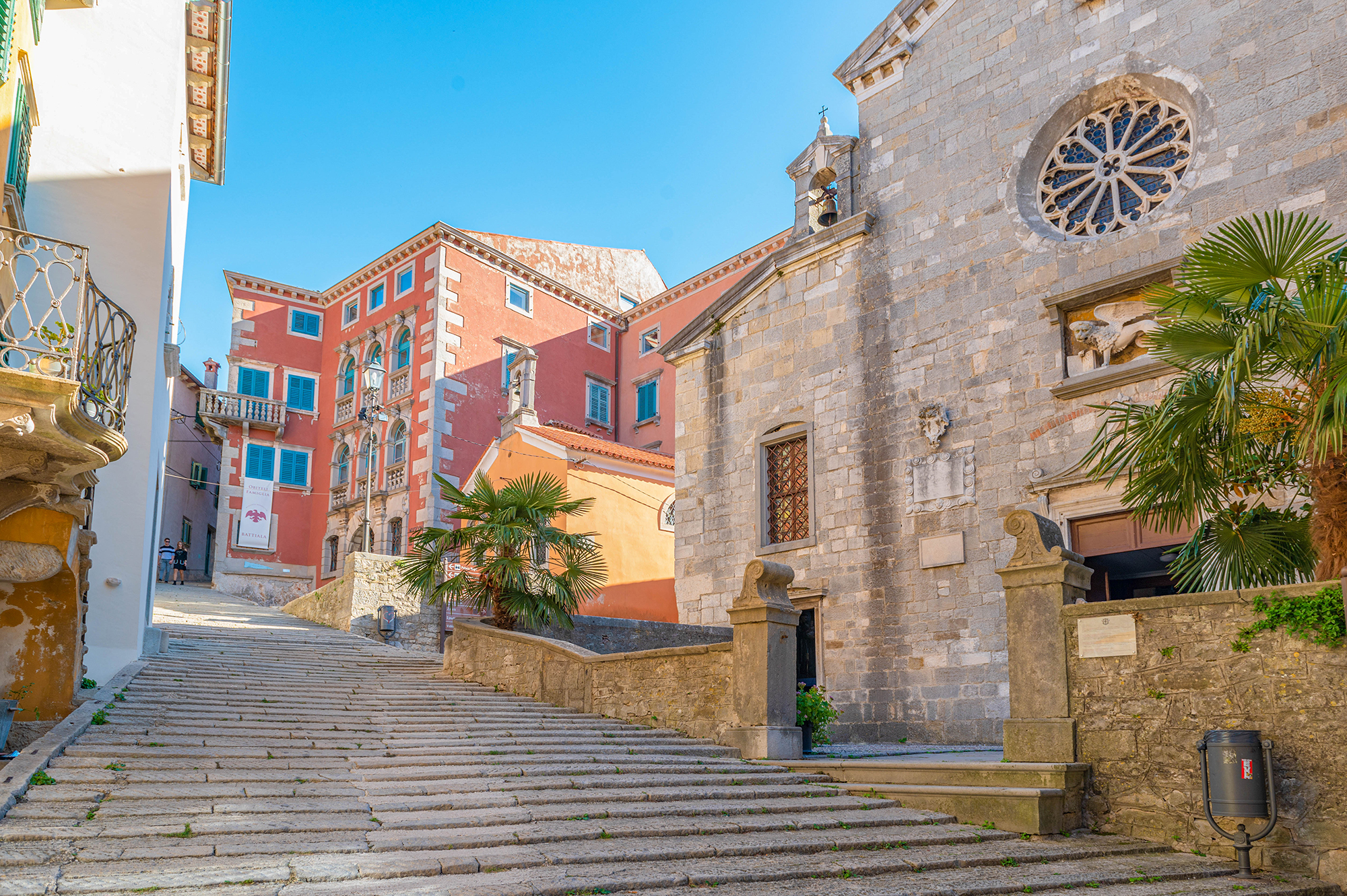 Die andächtige Kirche der Geburt der Heiligen Jungfrau Maria ist das bedeutendste sakrale Bauwerk von Labin und prägt das Bild der Altstadt. Sie wurde im 14. Jahrhundert errichtet und im 17. Jahrhundert im barocken Stil umgestaltet. Besonders prachtvoll sind die reich verzierten Fassaden mit venezianischen Einflüssen sowie das wertvolle Altarbild im Inneren. Heute dient die Kirche nicht nur als religiöses Zentrum, sondern auch als eindrucksvolles Zeugnis der langen Geschichte und kulturellen Vielfalt von Labin.