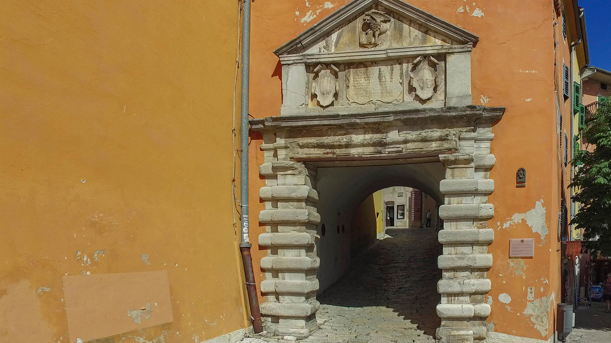 Porta Sanfior ist der Name für die wichtigsten Stadttore in Labin. Über dem Haupttor St. Florus sieht man das Labin-Wappen, sowie den Geist des Löwen Serenissima. (Foto: Kroati.de)