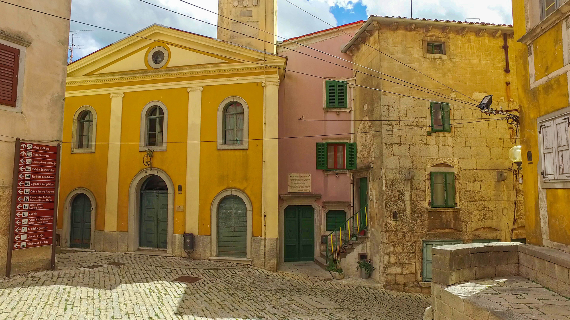 Im Zentrum steht die Kirche der Geburt der Hl. Jungfrau Maria und links daneben das Volksmuseum im Barockpalast der Familie Battiala Lazzarini. (Foto: Kroati.de)