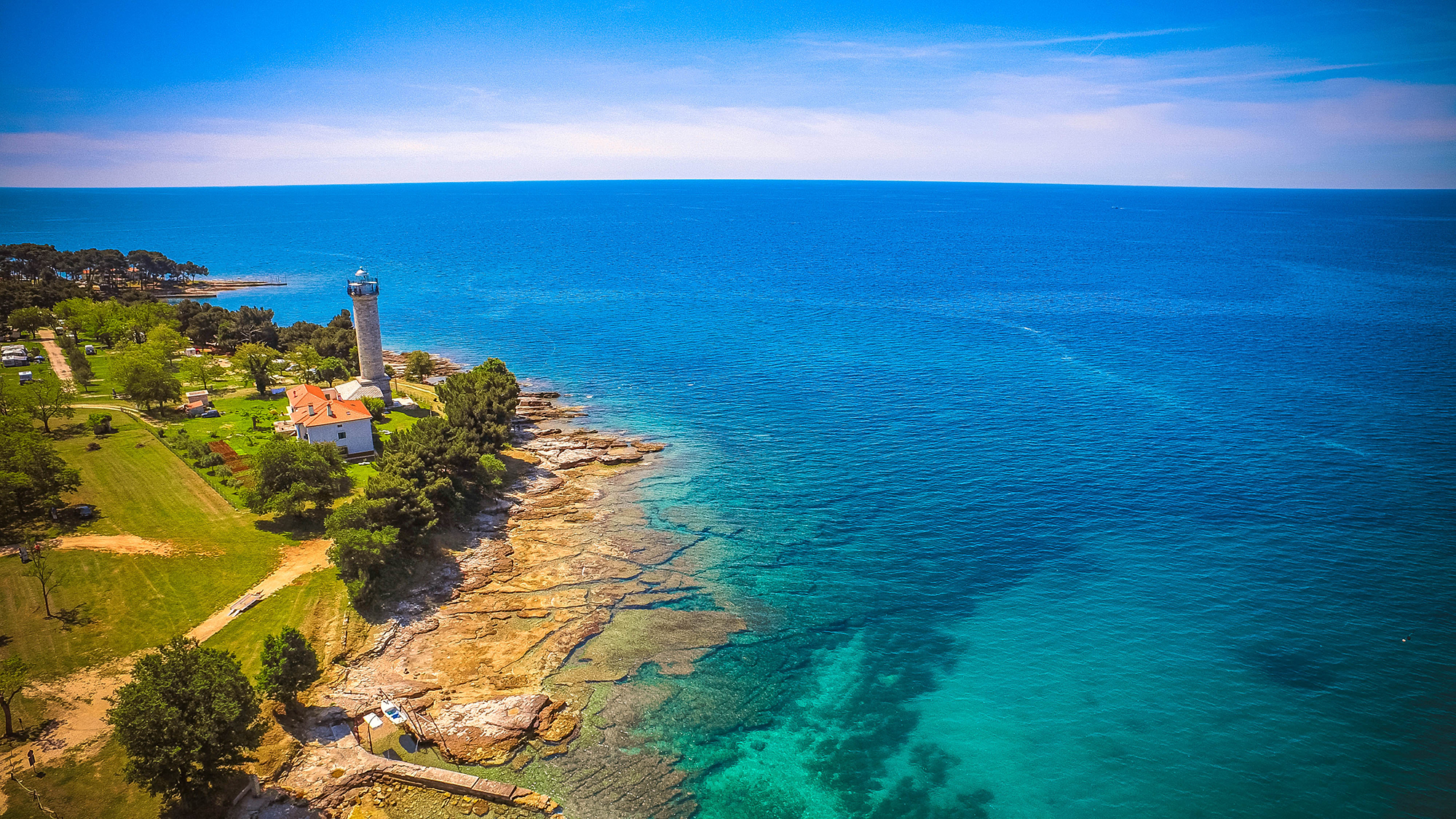Am malerischen Leuchtturm von Savudrija laden türkisblaues Meer und felsige Badeplateaus zum Baden ein. (Foto: Croatia.hr; Ivo Biocina)