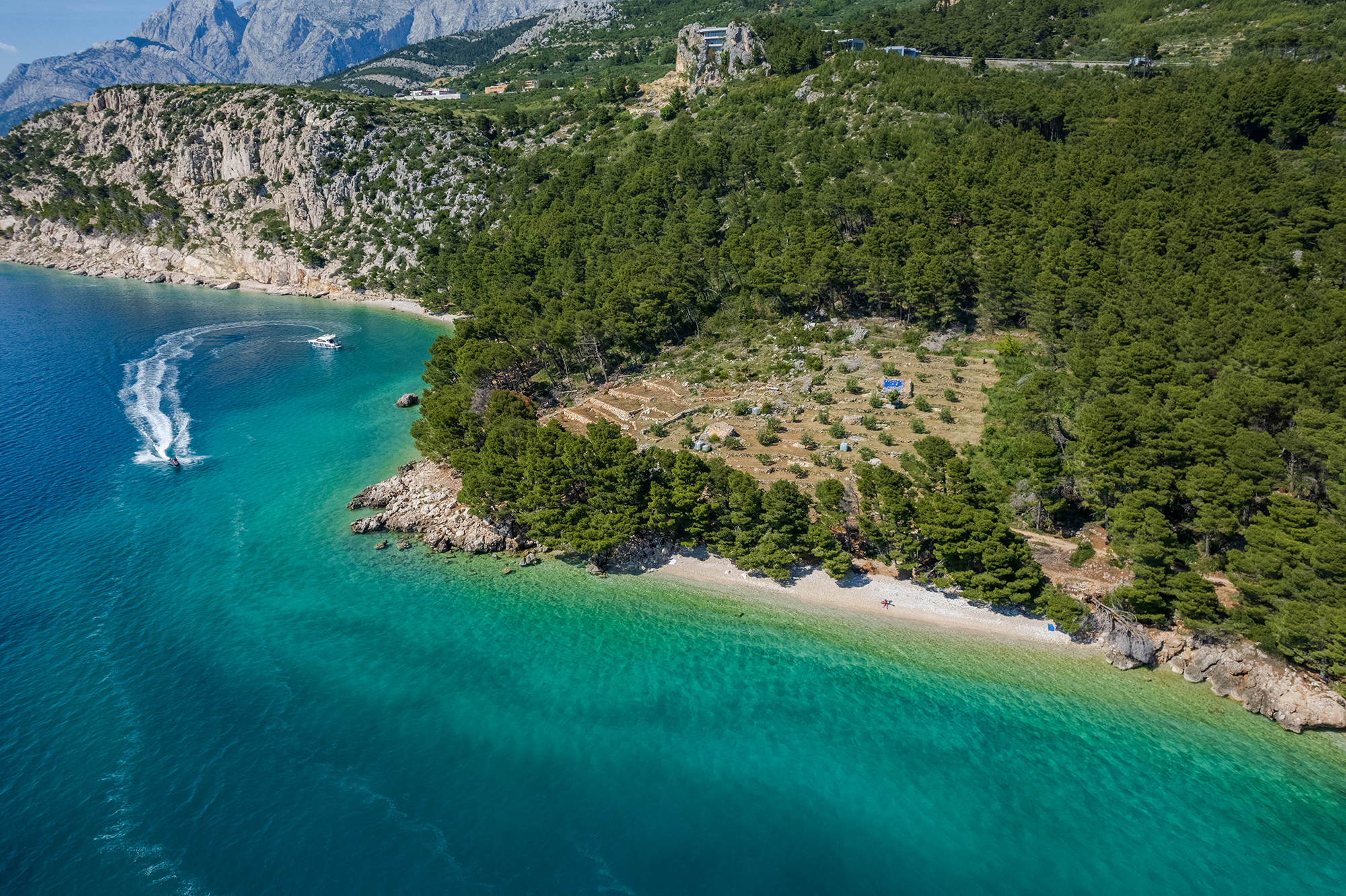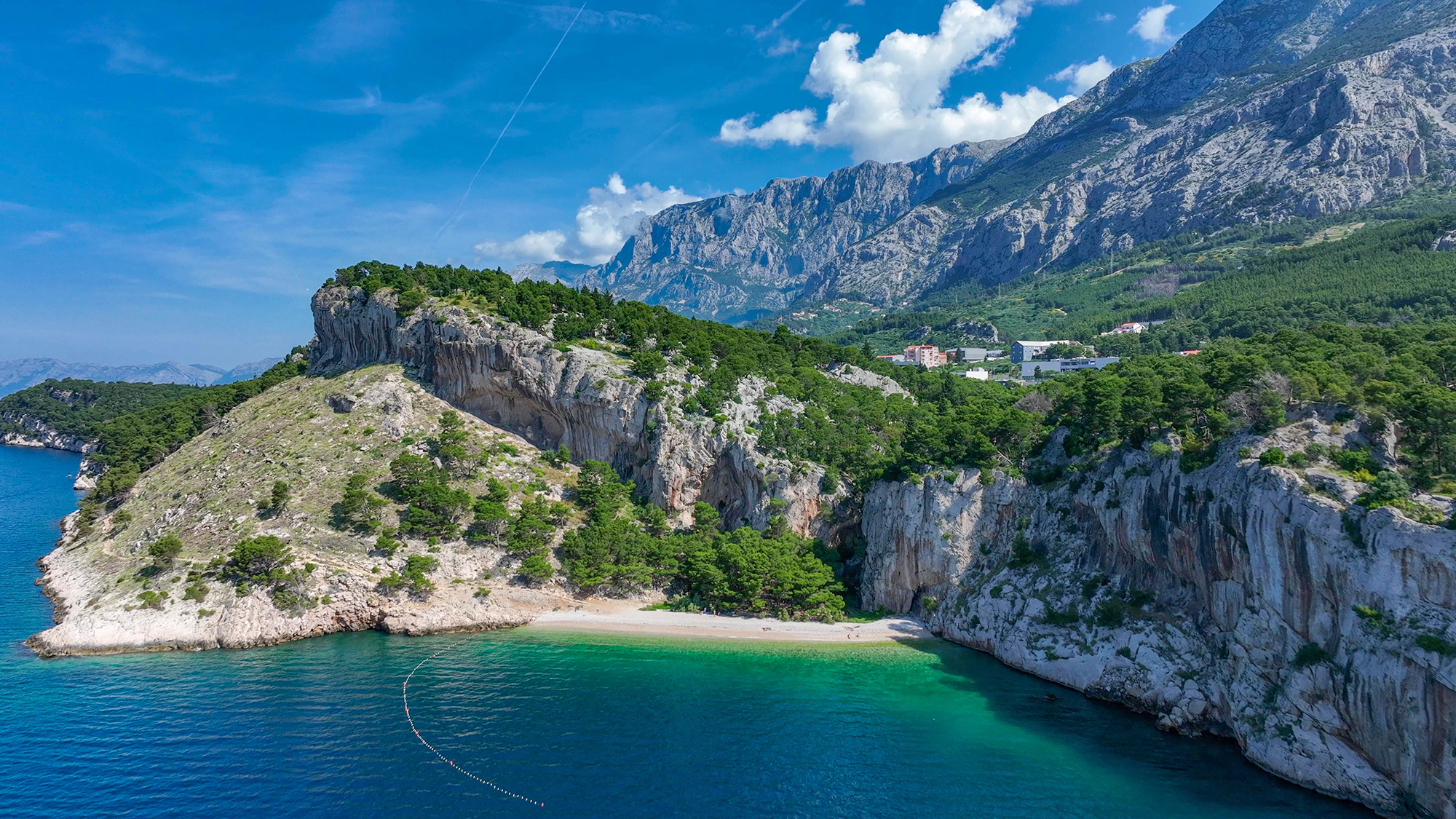 Luftaufnahme vom kleinen aber schönen Strand Osejava. (Foto: TZG Makarska; makarska-info.hr)