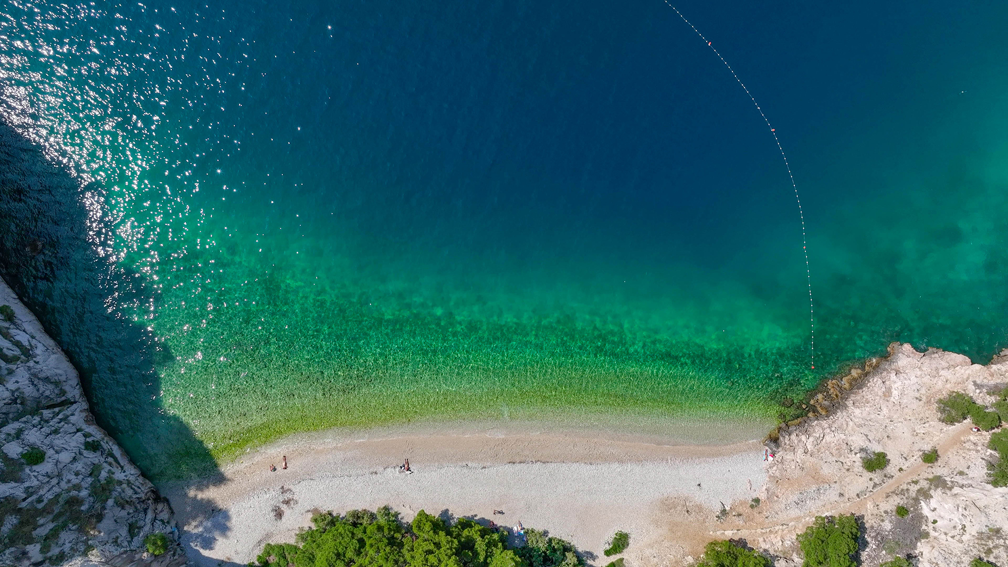 Etwas nördlich liegt der idyllische Naturstrand Cvitačka, der sich aus feinem Kiesel und felsigen Abschnitten zusammensetzt. Das Wasser ist glasklar und der sanfte Einstieg ins Meer eignet sich für alle Altersgruppen. Pinien sorgen für natürlichen Schatten und die Stimmung ist entspannter als an anderen Stränden und eignet sich ideal für alle, die Erholung suchen. In der Nähe sorgen kleine Bars und Cafés für wohltuende Erfrischungen. Für Naturisten gibt es auch einen Abschnitt in dem textilfrei gebadet werden kann.