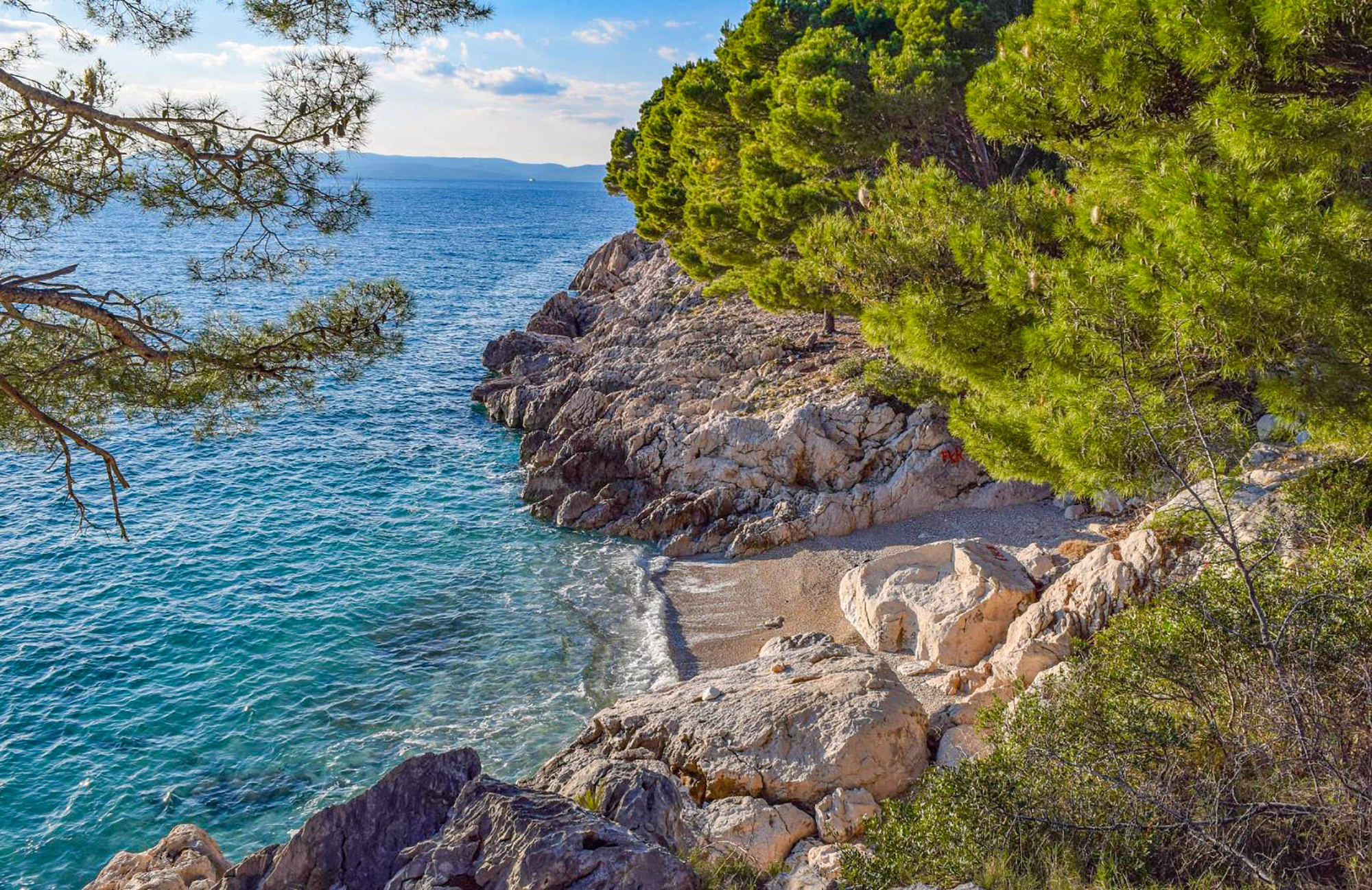 Feiner Kiesel und felsige Abschnitte erwarten Sie am etwas außerhalb liegenden Strand Kraljev gaj. (Foto: TZG Makarska; makarska-info.hr)