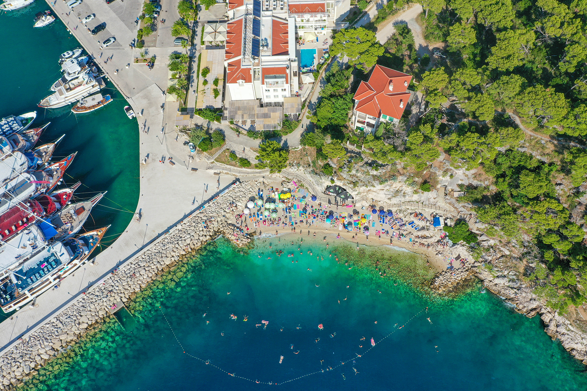 In diese bezaubernde Landschaft fügt sich eine Vielzahl an Stränden harmonisch ein. Der weitläufige Stadtstrand bietet alle erdenklichen Einrichtungen und ist der zentrale Treffpunkt, während Strände wie Ramova, Biloševac und Biokovka wundervolle Voraussetzungen für traumhafte Stunden am Meer schaffen. Wer Ruhe und Abgeschiedenheit sucht, findet sie in romantischen, abgelegenen Buchten wie Cvitačka oder Kraljev Gaj.