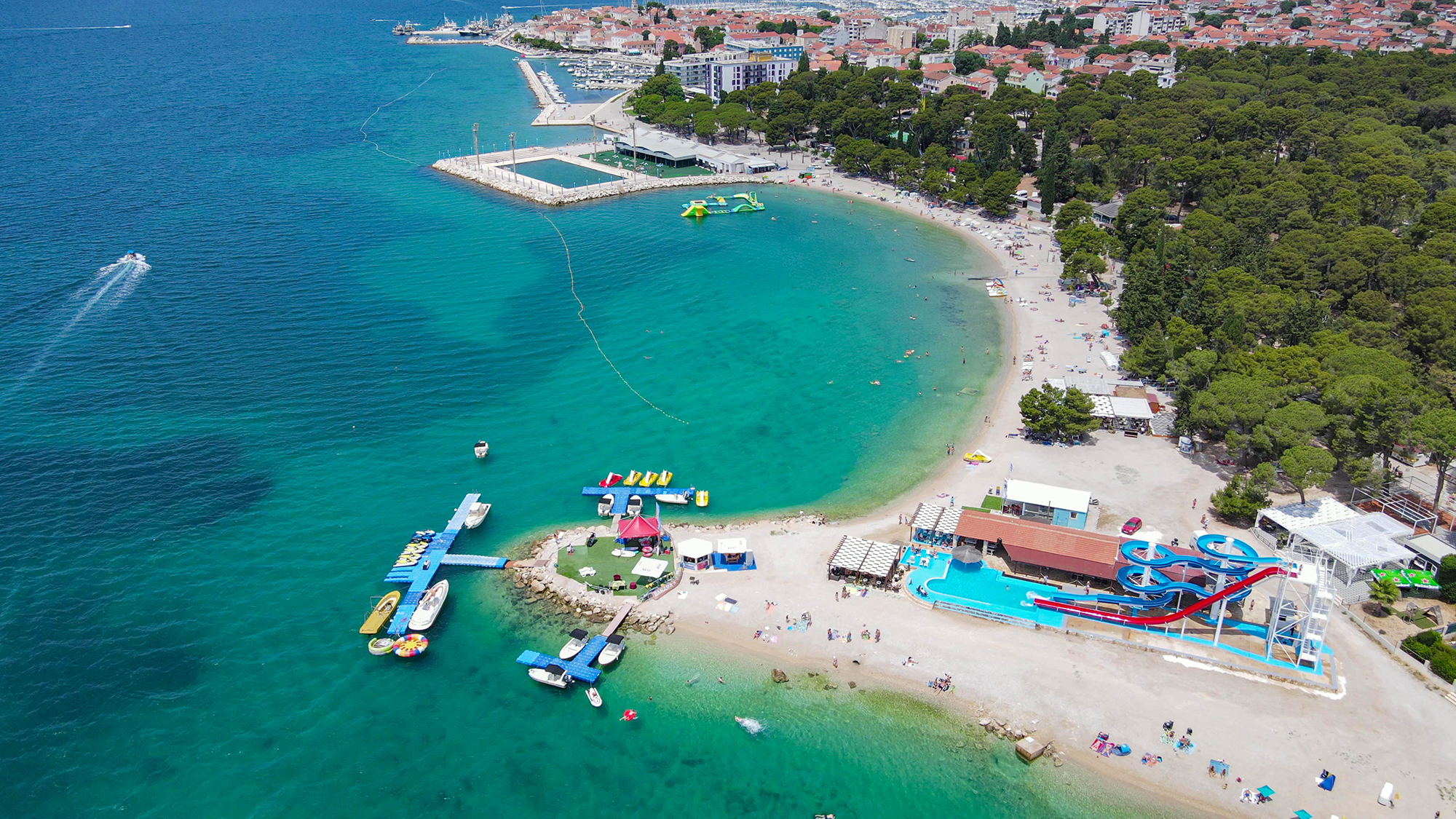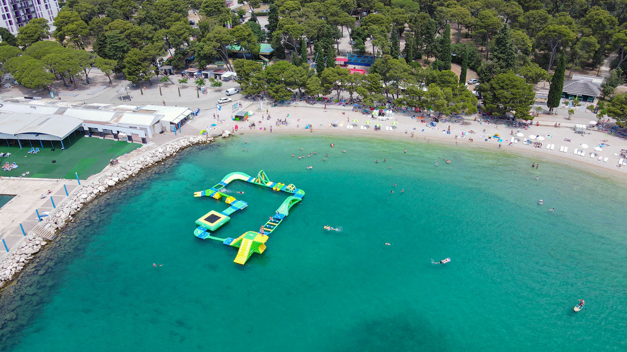 Der Strand Drazica bietet eine große Vielfalt an Sport- und Freizeitmöglichkeiten. Im Herzen des Areals befindet sich ein kostenloser Salzwasserpool, der abends zur Bühne für Konzerte und Discos wird. Für Spaß und Action sorgen ein aufblasbarer Wasserpark im Meer, eine Rodelbahn und ein Aqua Park mit zwei Wasserrutschen auf der kleinen Halbinsel. Sportbegeisterten werden zahlreiche Aktivitäten, wie Jet-Ski, Tretboot-, Kajak-, Kanu- und Bootfahren, Banana Boat, Stand-Up-Paddle und Parasailing angeboten. Auch eine Tauchbasis ist hier angesiedelt. Zusätzlich finden Sie einen Beachvolleyballplatz, sowie Kinderspielplatz mit Schaukeln.