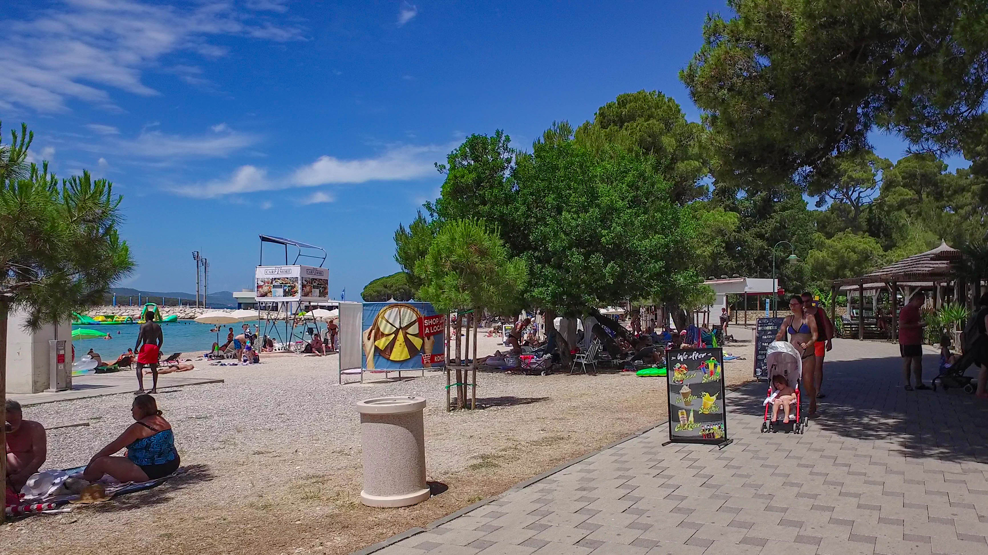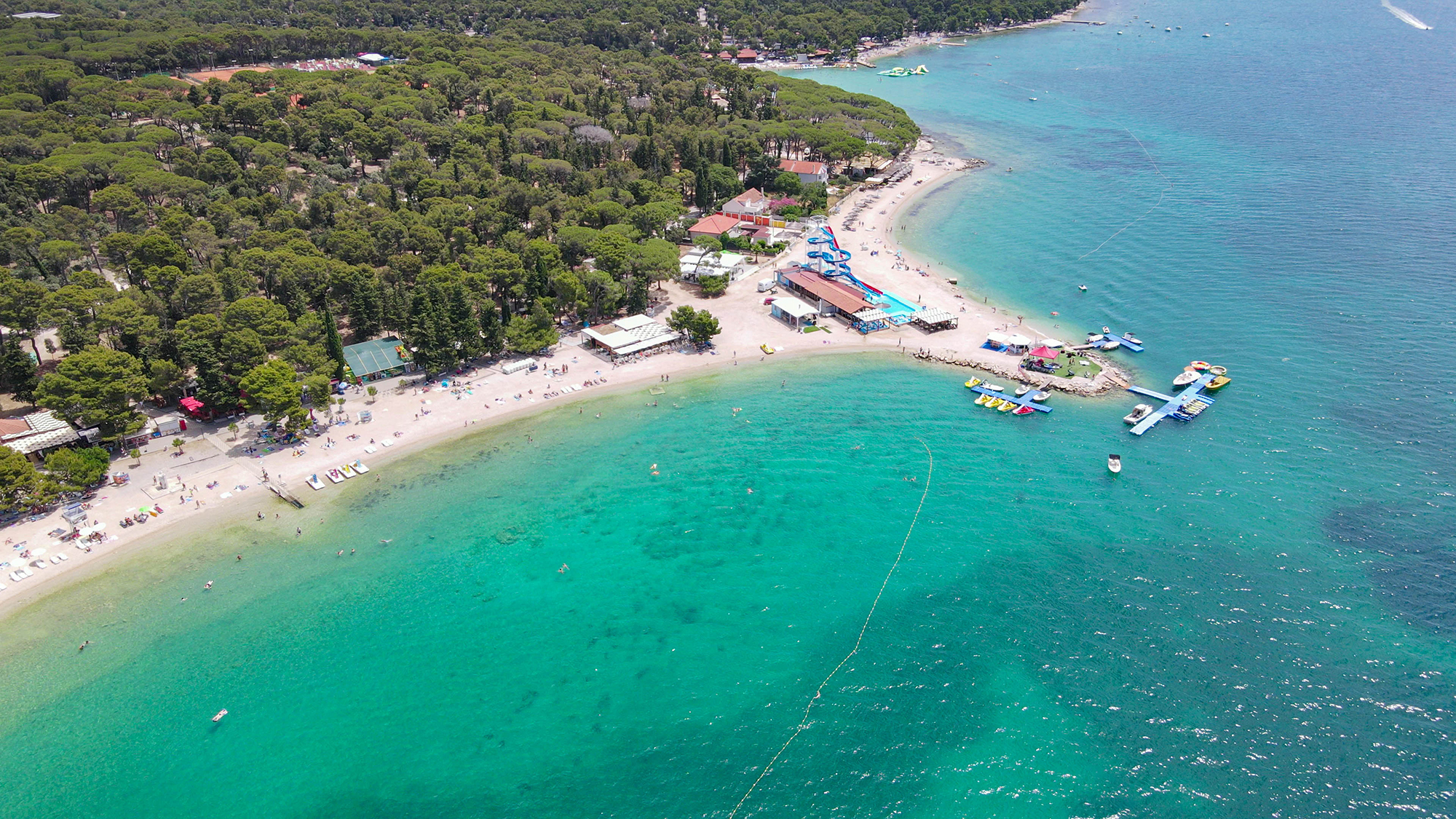 Der lange, feine Kieselstrand Dražica liegt südöstlich des Zentrums und ist der zentrale, belebte Hauptstrand und das Küstenjuwel von