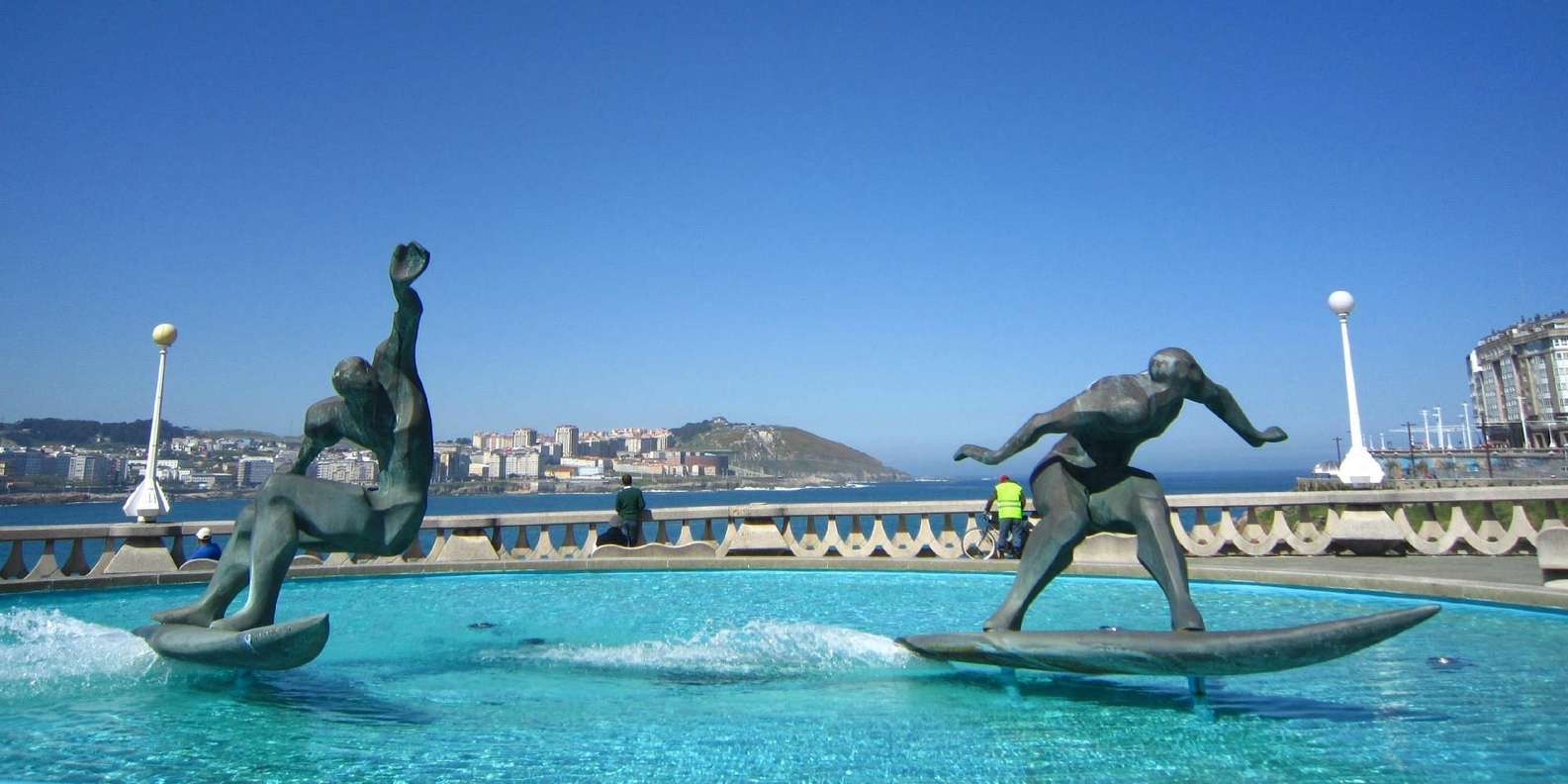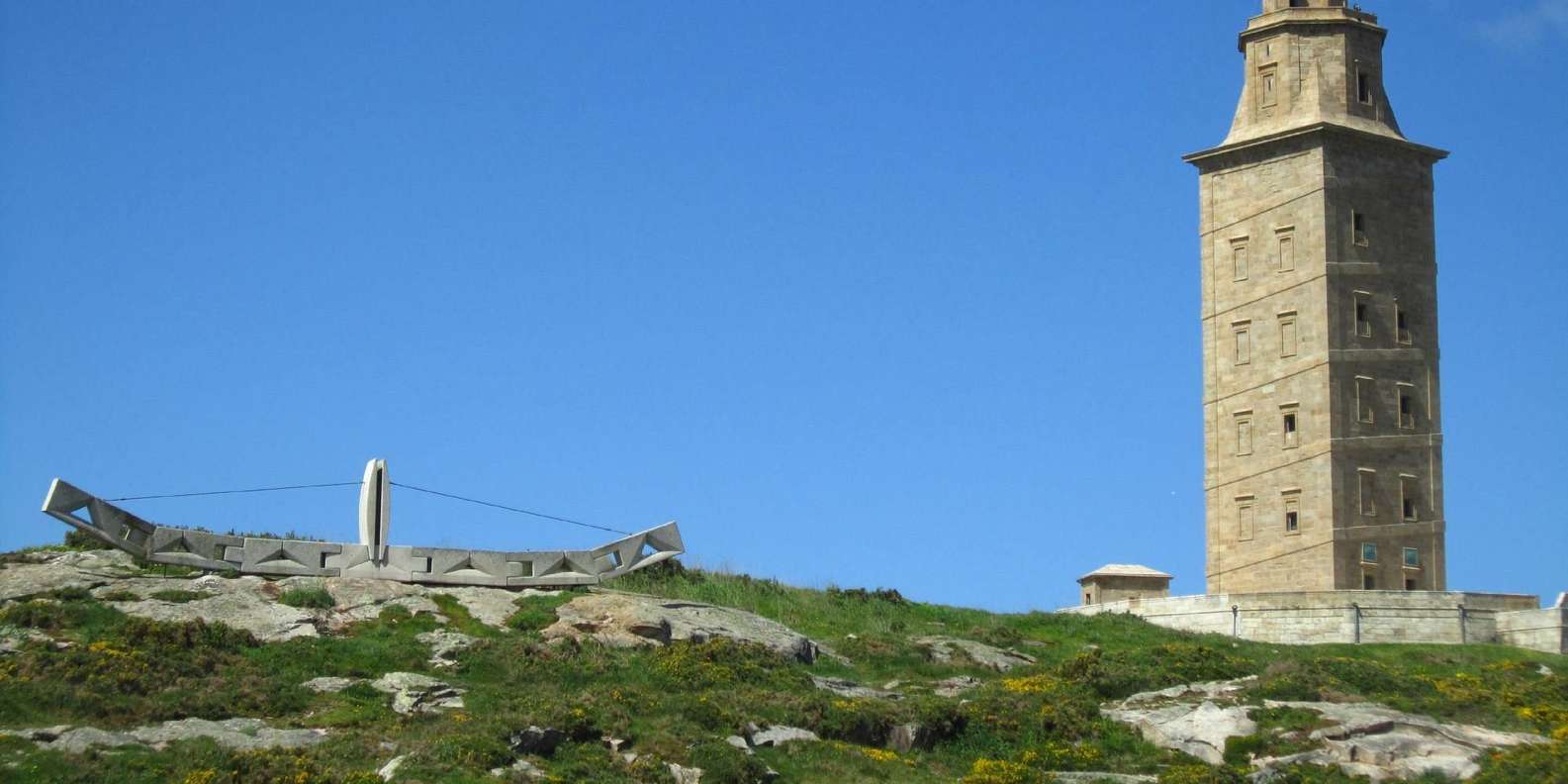Von hier aus geht's über die längste Promenade Europas (13 km) bis zum "Herkulesturm" (25 Minuten Pause), dem Wahrzeichen der Stadt, wo wir eine Pause einlegen, um herumzulaufen, Fotos zu machen und die schöne Aussicht auf die Bucht von La Coruña zu genießen.