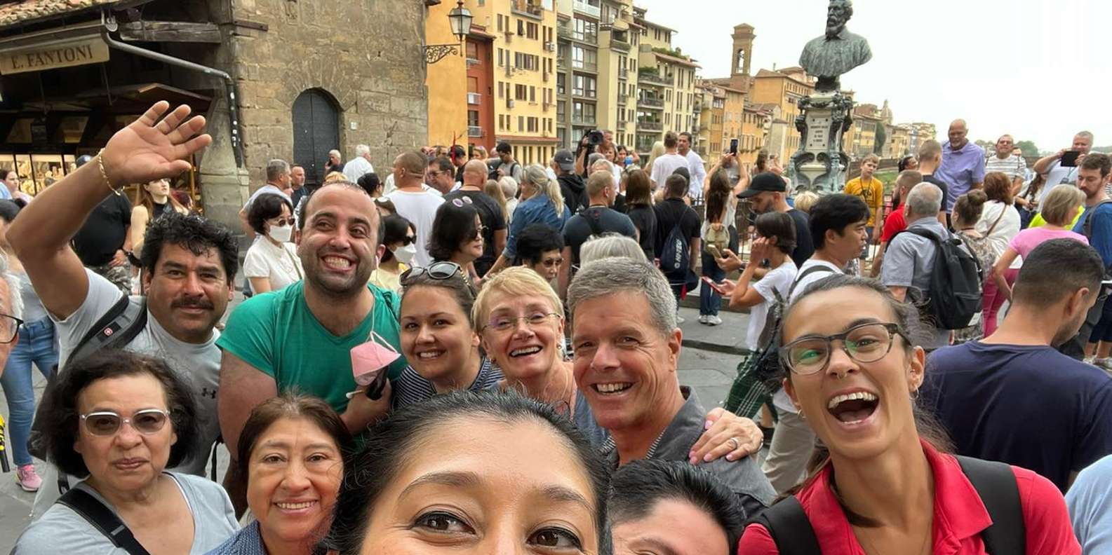 Nachdem du den Anweisungen am Treffpunkt gefolgt bist, wirst du von einem leicht zu identifizierenden Mitarbeiter begrüßt, der dir den Stadtplan, den Code für die Wi-Fi-Nutzung und den bevorzugten Zugang zum Bus gibt, der dich in den Stadtteil Santa Maria Novella in Florenz bringt.