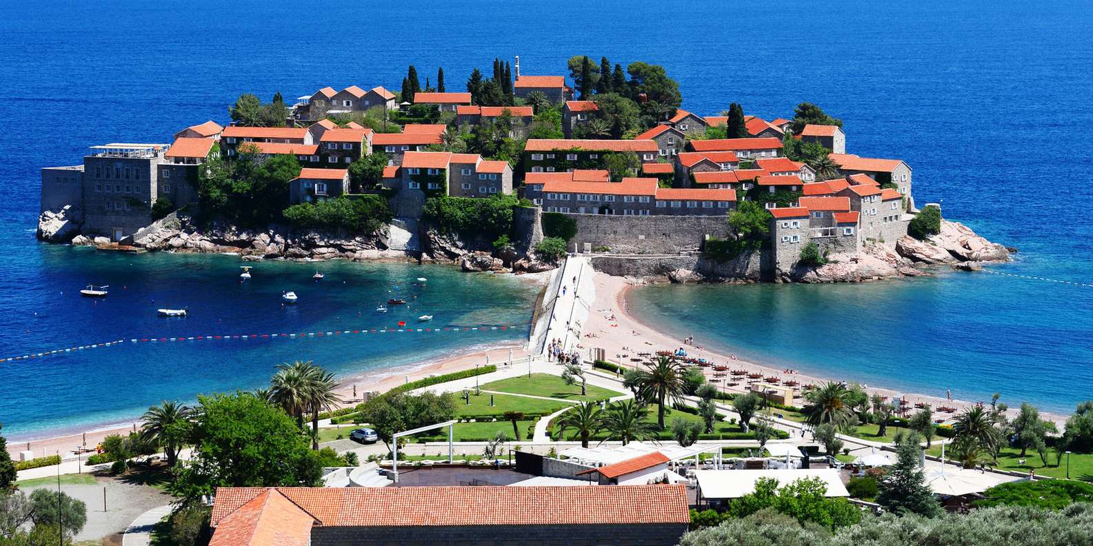 Sveti Stefan Panorama: Der kultigste Blick! Mach beeindruckende Fotos von der befestigten Insel Sveti Stefan, dem Juwel der Adria.