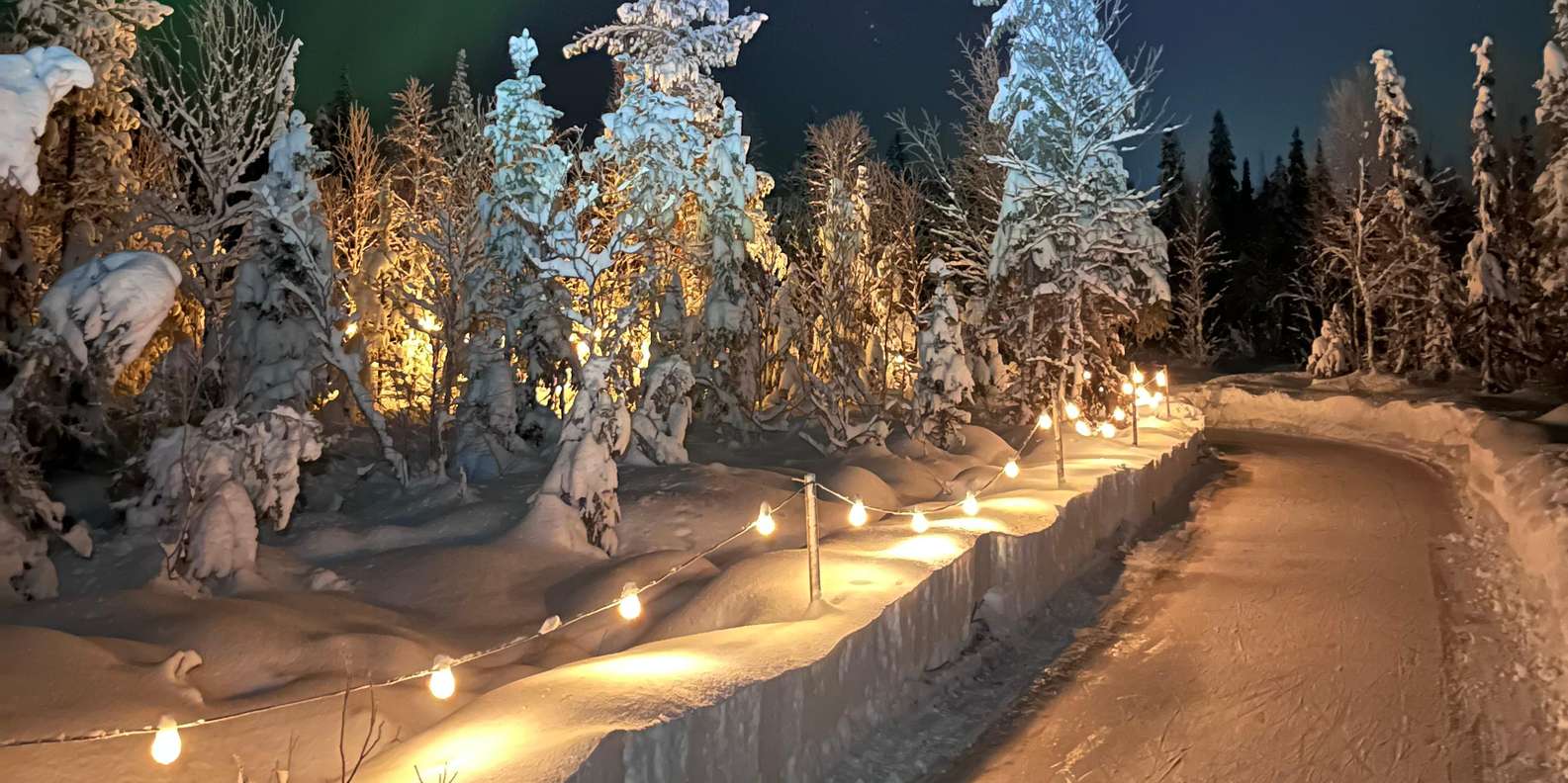 Erlebe die Freude, über einen 1 km langen natürlichen Eisweg zu gleiten, der sich durch das Winterwunderland Lapplands schlängelt.