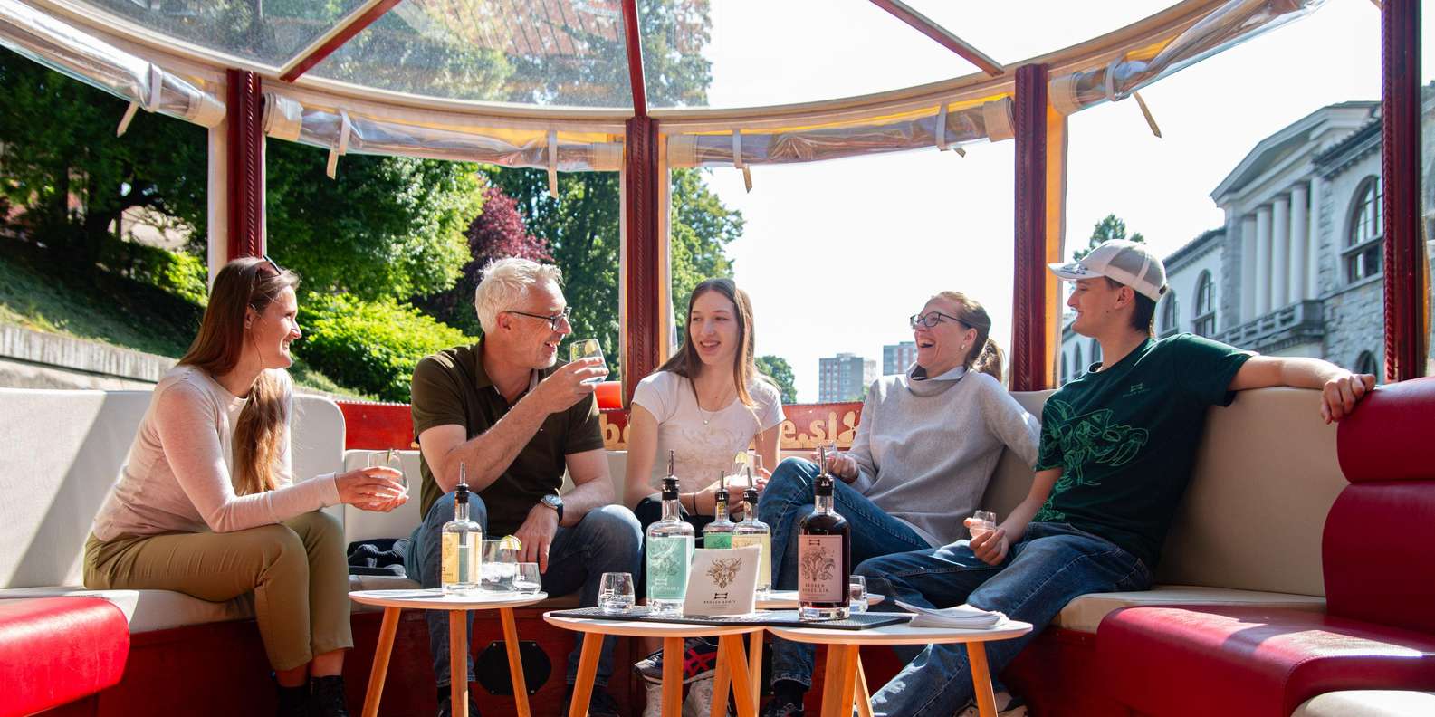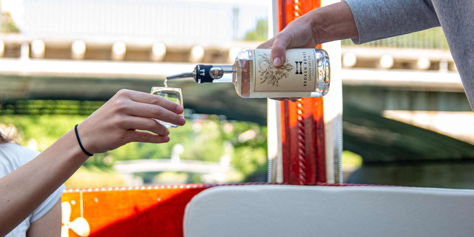 Geführte Gin-Verkostung 2 Gin Tonics 5 Proben von reinem Gin Bootsfahrt auf der Ljubljanica Live-Kommentar an Bord