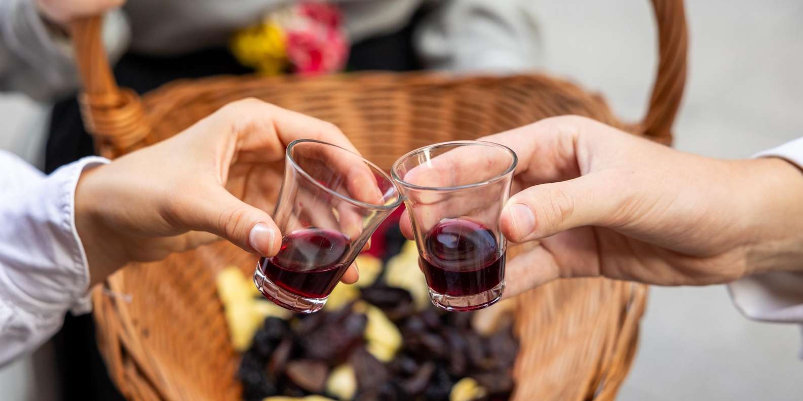 - Nippe an einem Begrüßungsgetränk aus lokalem Schnaps und Trockenfrüchten