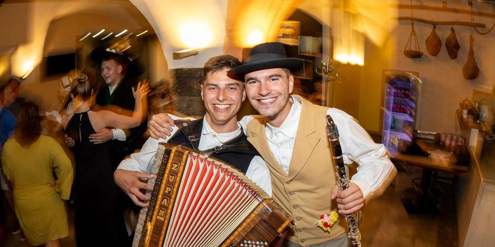 Als Nächstes kannst du dich mit einem bäuerlichen Hähnchen, Schweinefilet mit Kochsauce, Kartoffeln und Salat stärken. Jetzt bist du an der Reihe, auf die Tanzfläche zu hüpfen und die Polka zu lernen. Den Abend beendest du mit einem Dessert und traditionellen slowenischen Spielen wie pouštertanc, was übersetzt "der Kissentanz" heißt, unserem Spiel mit Hüten... Zum Schluss, nach einer Nacht voller Spaß und Spiel, bekommst du ein besonderes, selbstgemachtes Souvenir, wenn du dich nach einer guten Zeit bei uns entspannst.