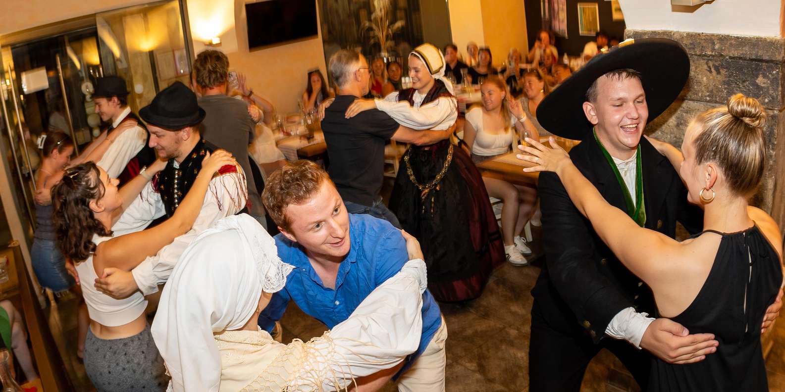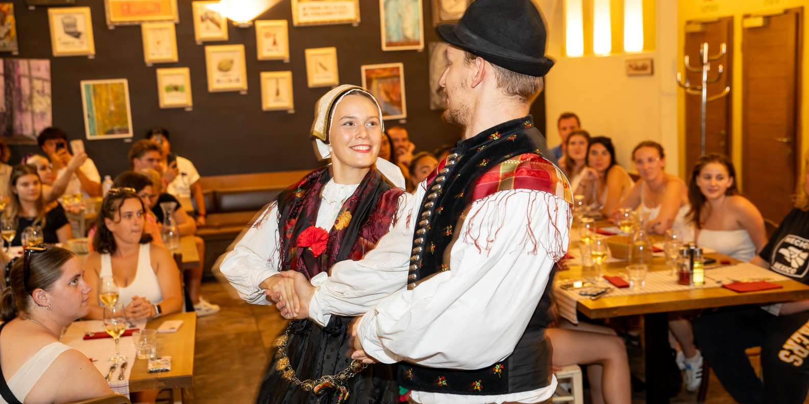 Erlebe die slowenische Kultur mit Volkstänzern in Tracht, Musik, Spielen und einem traditionellen Abendessen in einem Restaurant in Ljubljana. Fühle dich wie ein Einheimischer, tanze wie ein Einheimischer und iss wie ein Einheimischer.