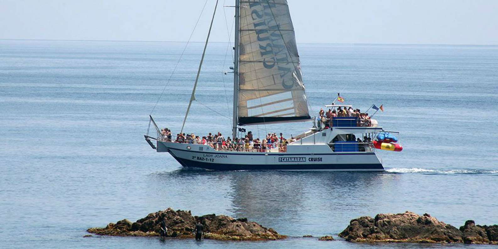 Auf der Katamaran-Kreuzfahrt kannst du die beste Aussicht auf die gesamte Costa Brava genießen, während du entlang der Buchten der authentischen wilden Küste zwischen Lloret de Mar und St. Feliu segelst.