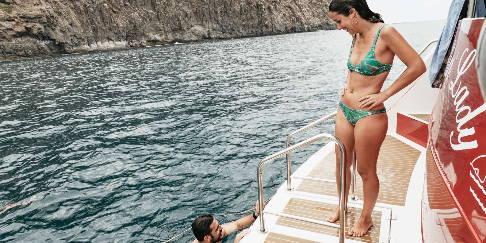 Genieße und fühle dich sicher auf der Travelin'lady Öko-Yacht, da sie eine der wenigen auf der Insel ist, die alle Sicherheitszertifikate erfüllt. Sie wurde mit einem 22 cm dicken faserverstärkten Rumpf gebaut. Erlebe eine Yacht mit niedrigem Schwerpunkt, was bedeutet, dass du weniger rollst und schwindelig wirst. Das Boot ist auch mit 2 sehr emissionsarmen und rauchfreien Motoren ausgestattet, die von der Regierung der Kanarischen Inseln als „Blue Boat“ ausgezeichnet wurden, was bescheinigt, dass das Boot die gesetzlichen Anforderungen erfüllt, um die Aktivität sicher und nachhaltig durchzuführen.