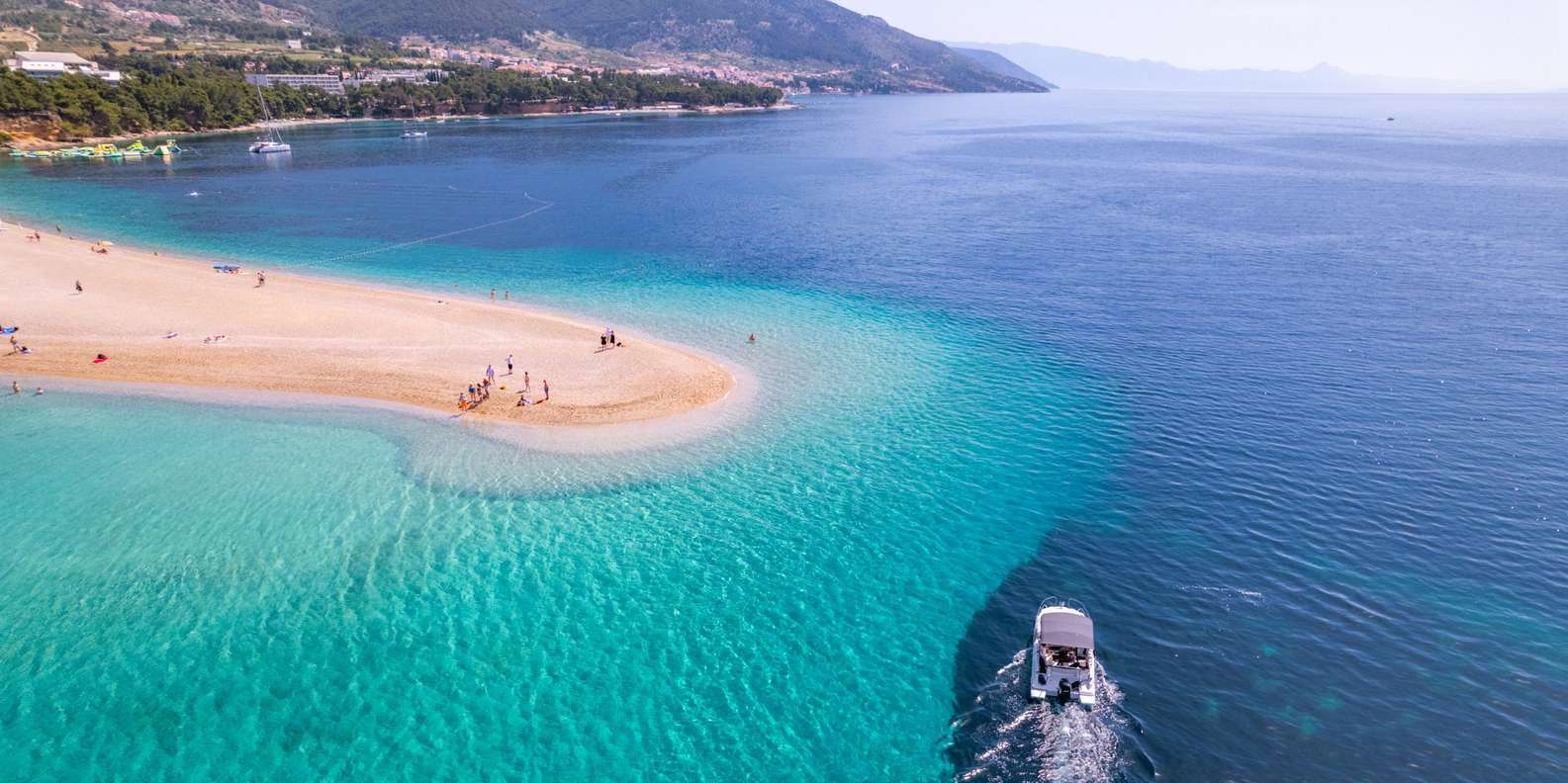 Von dort aus genießt ihr eine 45-minütige Panorama-Bootsfahrt über die glitzernde Adria zum Goldenen Horn (Zlatni Rat) auf der Insel Brač. Dieses Naturwunder ist der meistfotografierte Strand Kroatiens und bekannt für seine einzigartige Form, die sich mit dem Wind und den Strömungen verändert. Das Schnellboot legt direkt an der Spitze des Strandes an, sodass ihr 60 Minuten Zeit habt, um zu schwimmen, euch zu sonnen oder einfach nur die Umgebung zu bewundern.