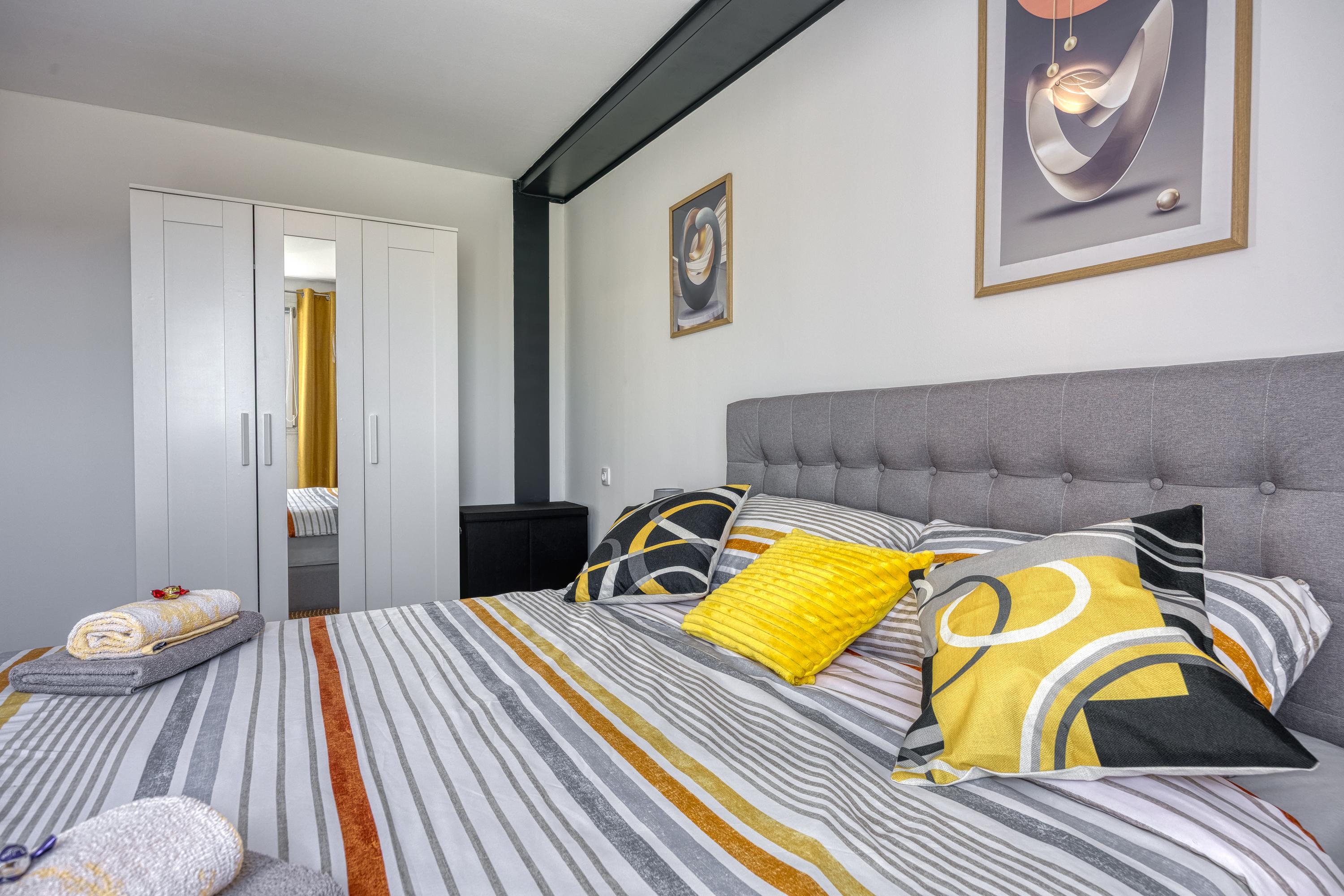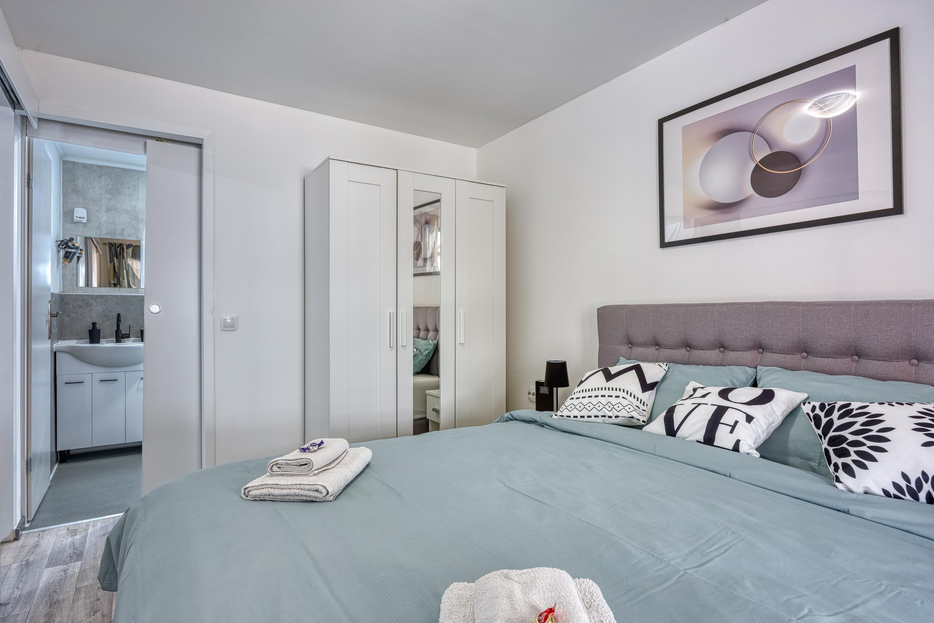 Schlafzimmer 2: Das zweite Schlafzimmer ist mit einem bequemen Doppelbett und einem Kleiderschrank ausgestattet.
