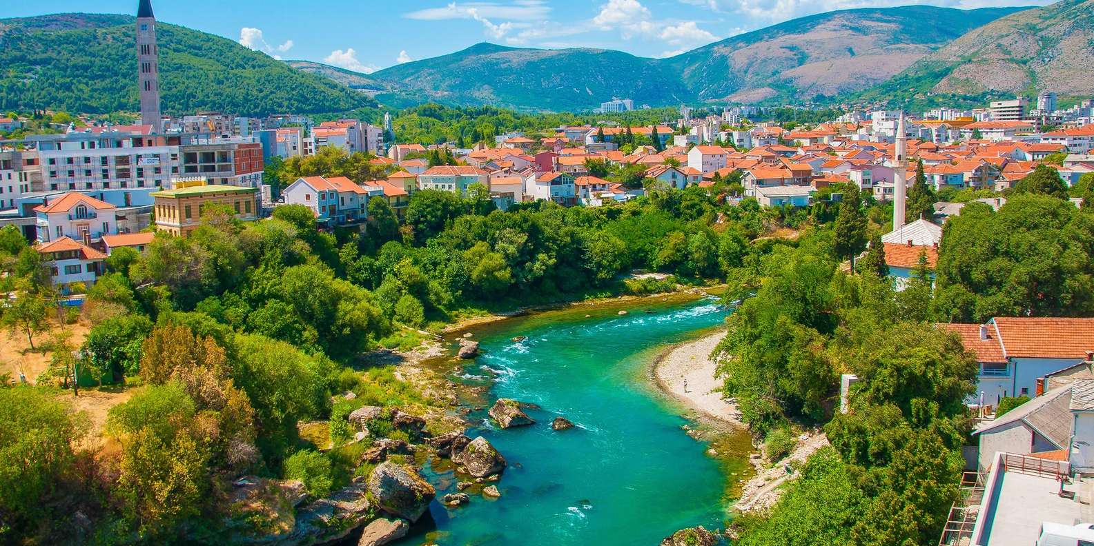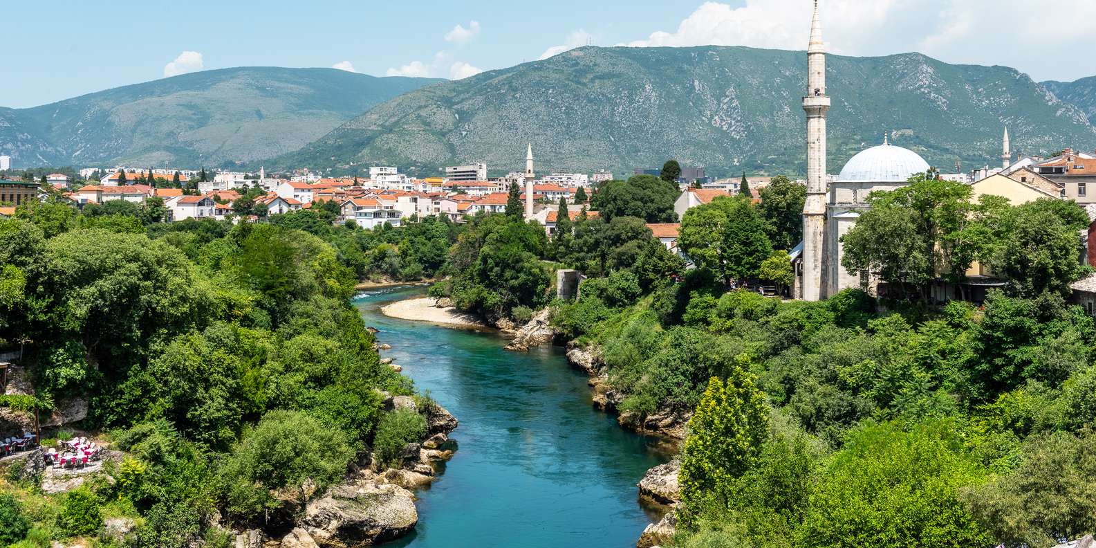Folgen Sie dem Lauf des Flusses Neretva auf dem Weg nach Mostar. Bewundern Sie, wie der Fluss das Land bereichert, und sehen Sie Mandarinen- und Kiwiplantagen. Entdecken Sie bei Ihrer Ankunft in Mostar eine Stadt der Kontraste, reich an Kultur und geteilt durch das Wasser des Flusses.