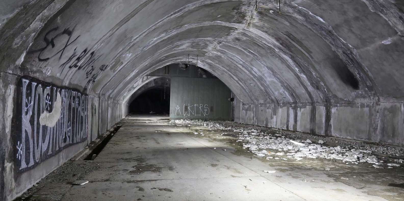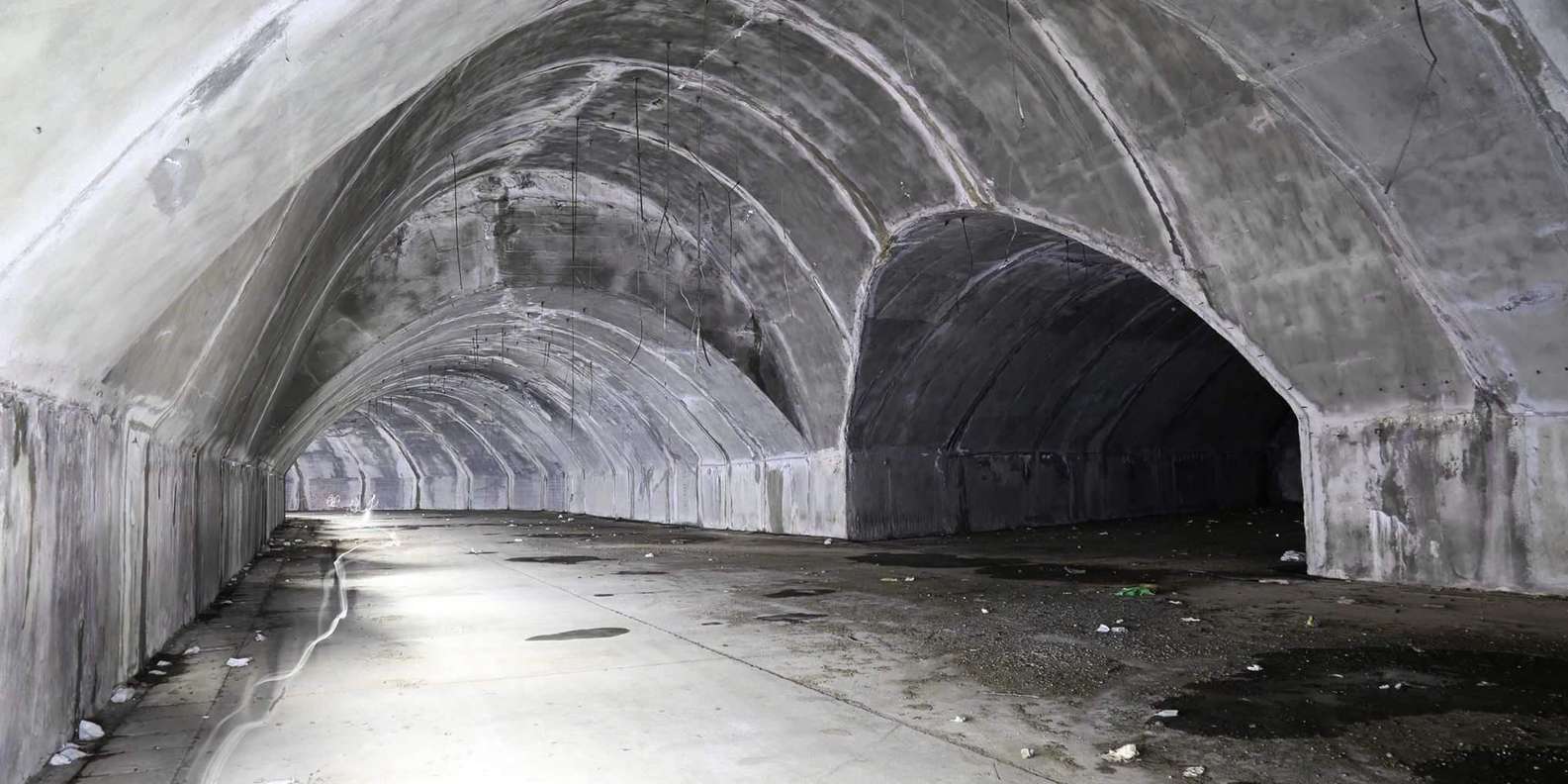 Der Tunnel ist etwa dreihundert Meter lang und bietet Platz für 20 Flugzeuge.