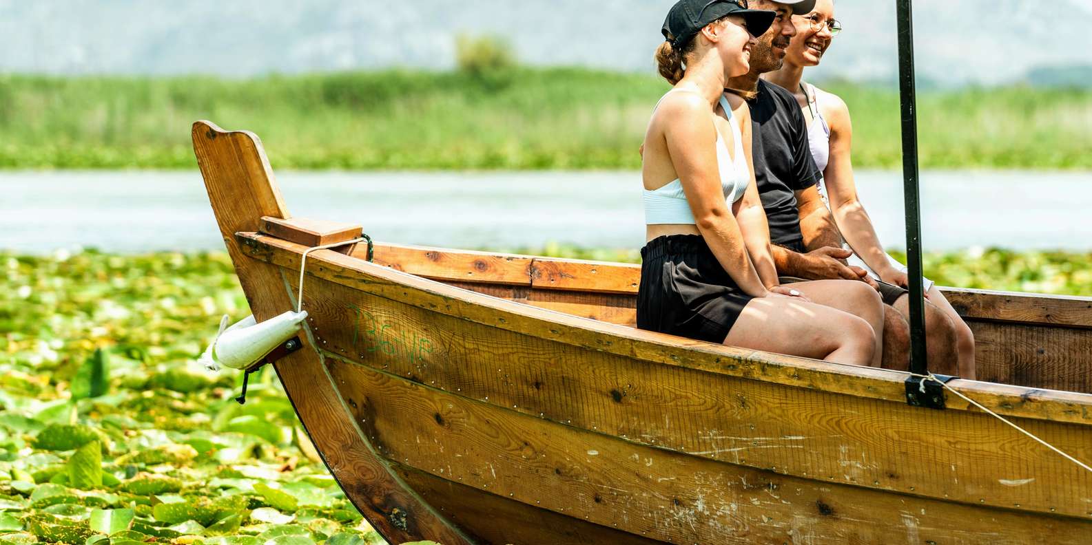 Erlebe die Magie des Skadar-Sees und die Schönheit des Klosters Kom auf einem Ausflug von Virpazar aus. Fahre in einem traditionellen Holzboot durch die Kanäle und genieße die Aromen der Region mit lokalem Wein.