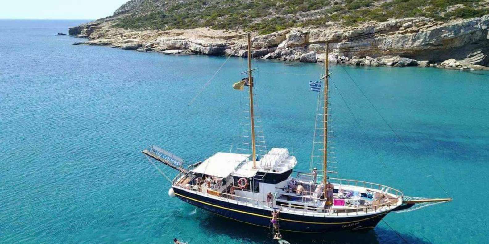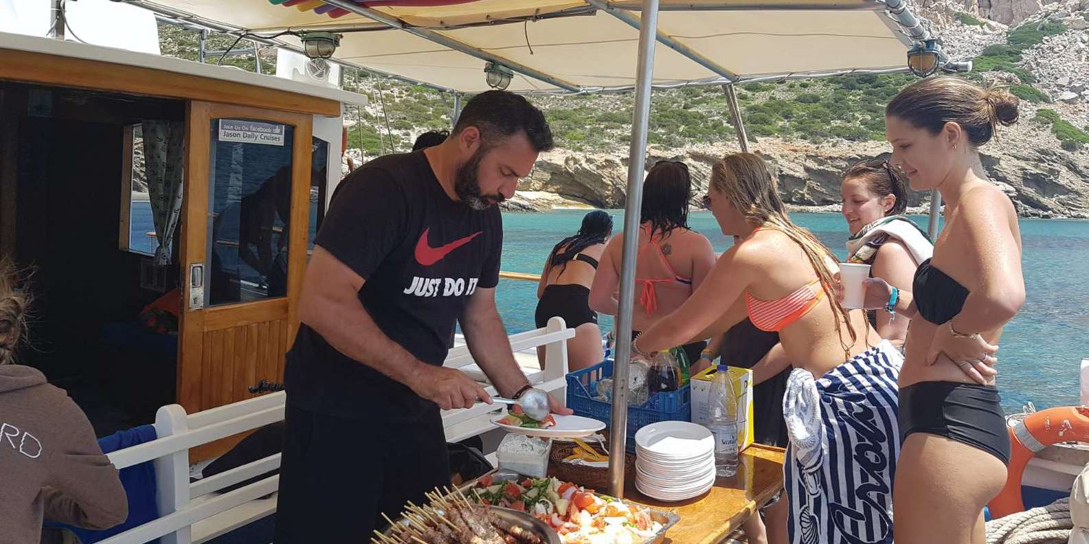 Auf dieser Kreuzfahrt fährst du vom kleinen Pier in Agia Anna ab. Angekommen in Kato Koufonissi, einem Himmel auf Erden mit wunderschöner Aussicht Es folgt ein griechisches Barbecue mit lokalem Wein (