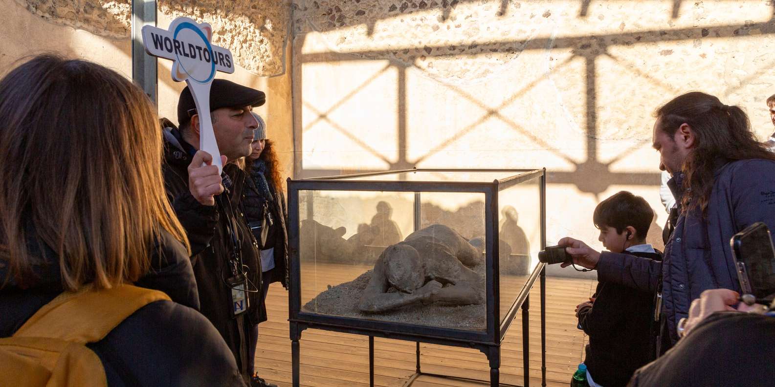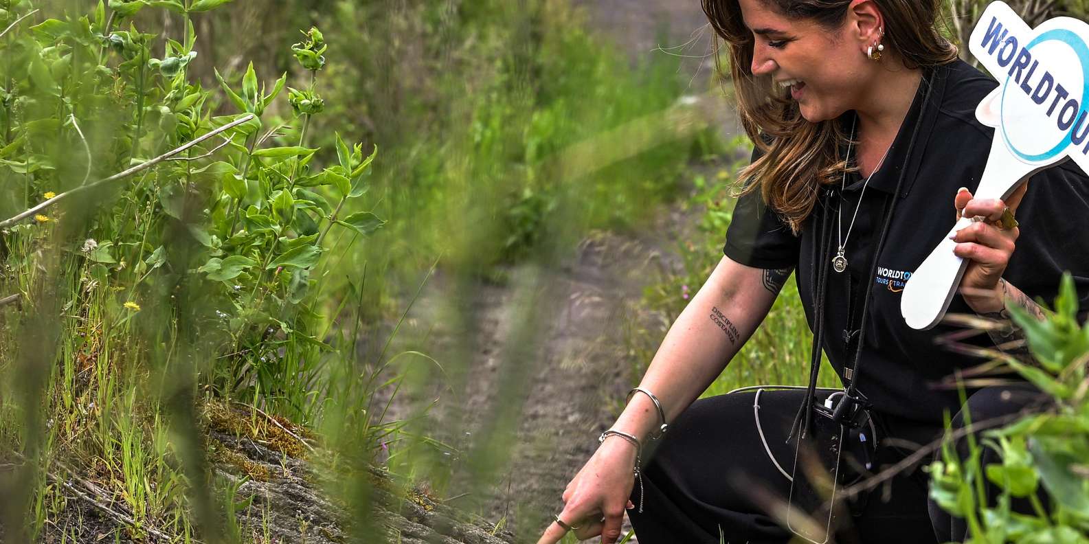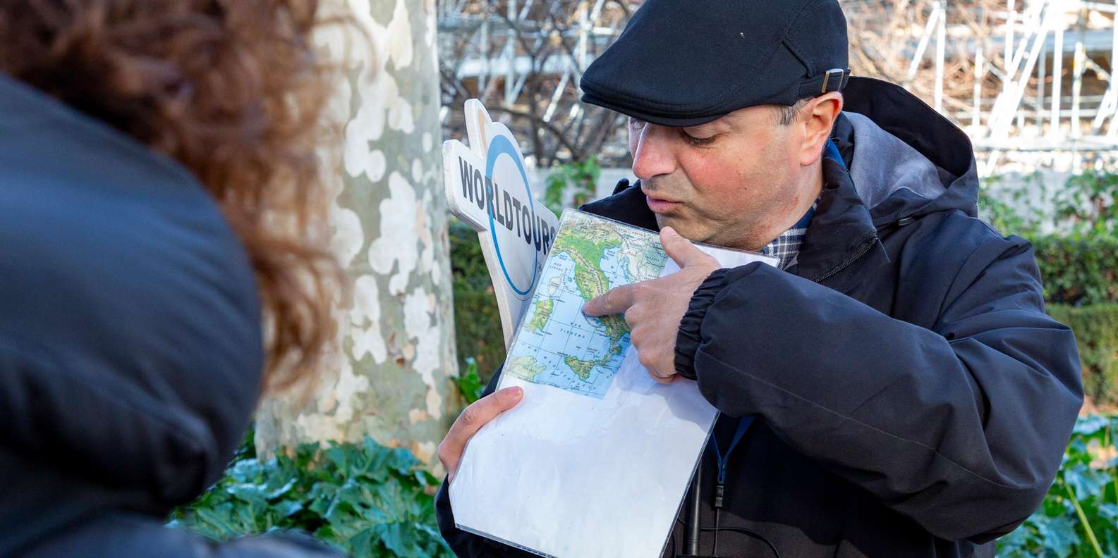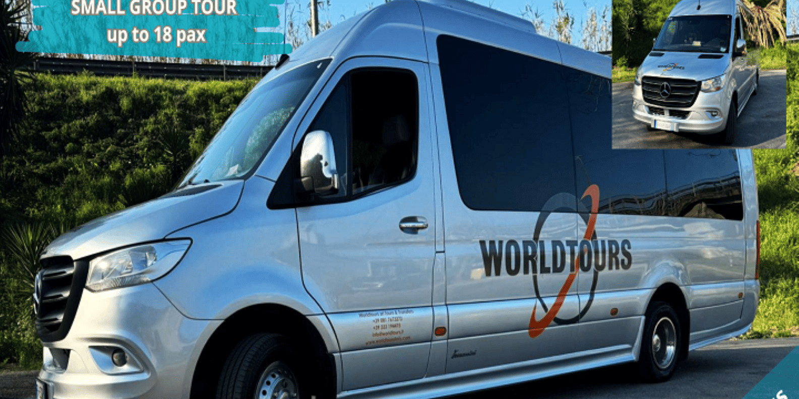 Unser Guide oder Fahrer wird ein Schild mit dem Logo "Worldtours" in der Hand halten.