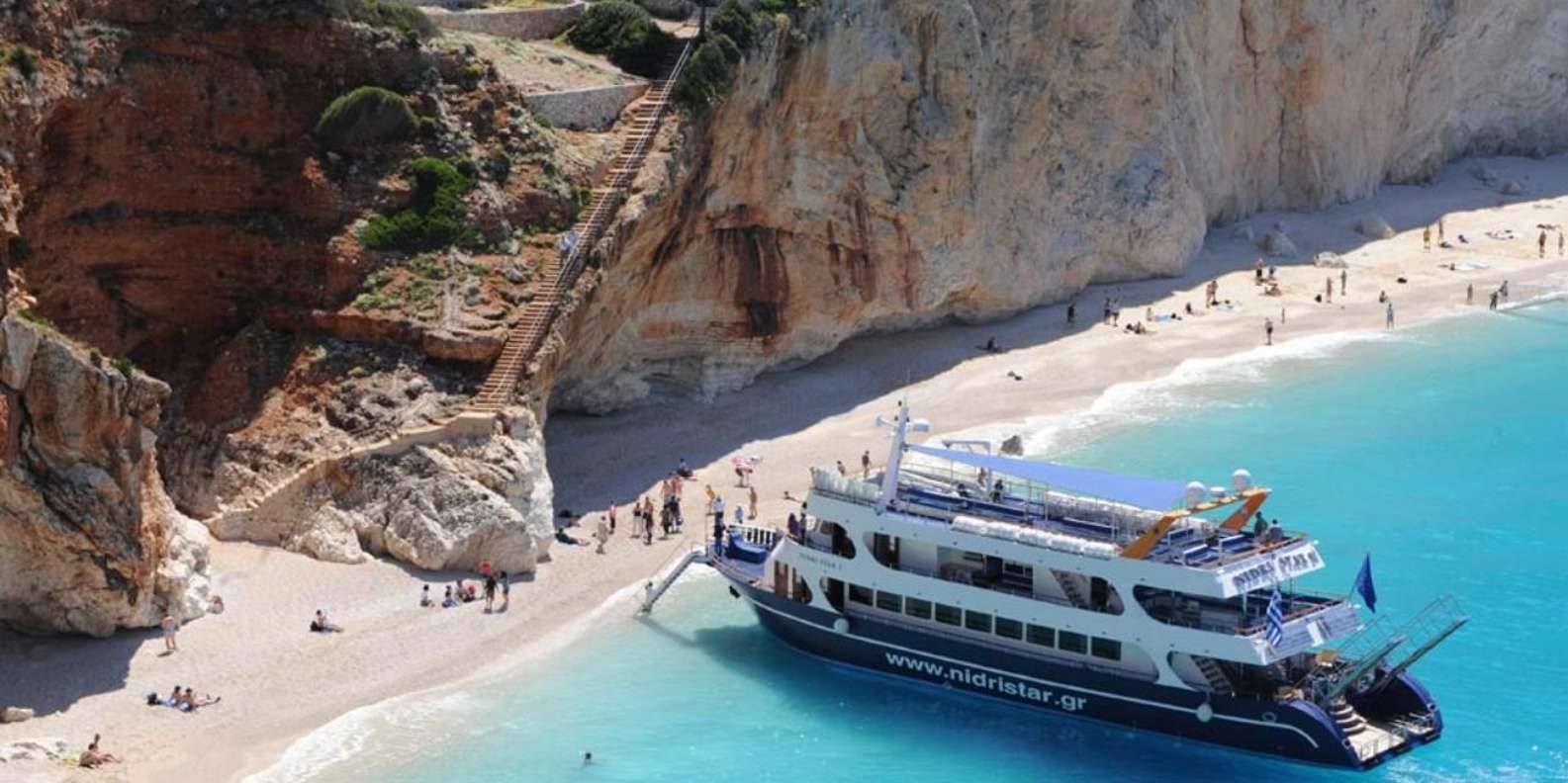 Entdecken Sie die Ionische Riviera auf einer Bootsfahrt ab Nidri. Schwimmen Sie in Porto Katsiki und Ergremni, erkunden Sie Fiskardo, besuchen Sie Ithaka und sehen Sie die Papanikoli-Höhle sowie die weltberühmte Insel Skorpios.