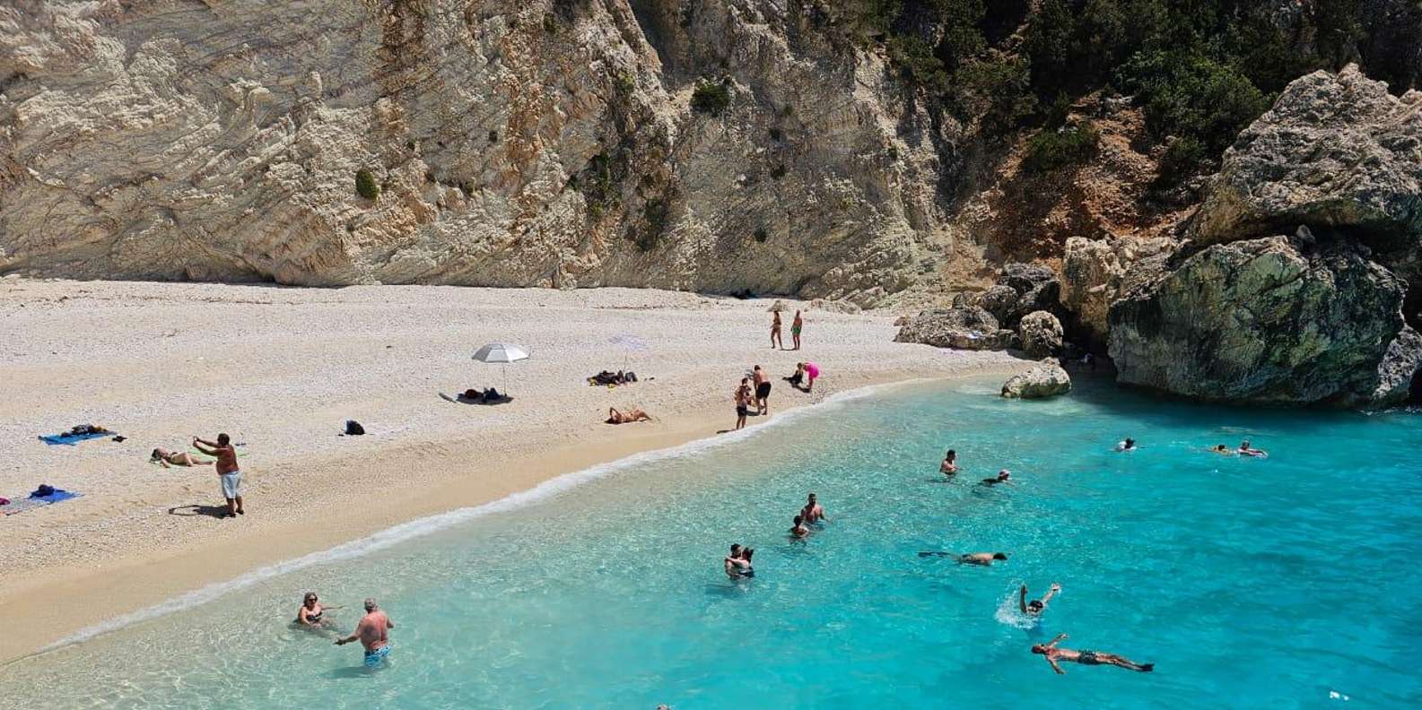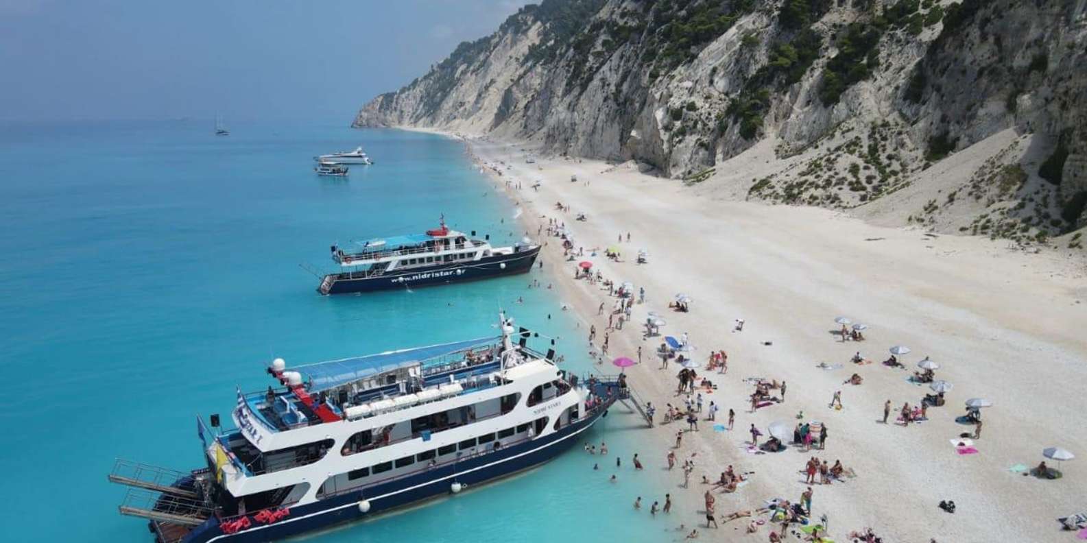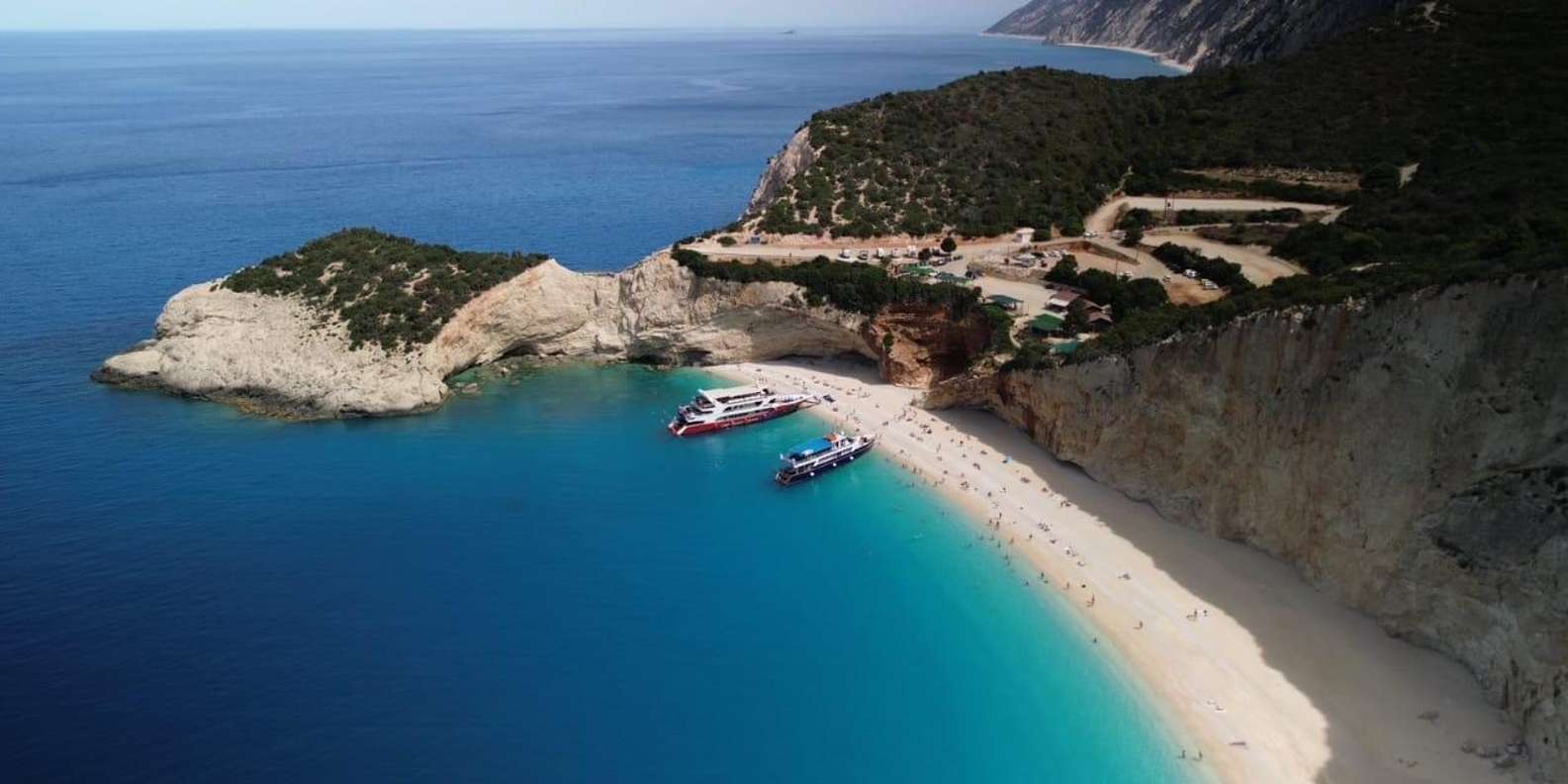 Setzen Sie in Nidri die Segel und fahren Sie nach Porto Katsiki, einem der schönsten Strände des Ionischen Meeres. Schwimmen Sie im kristallklaren Wasser und genießen Sie die Sonne auf dem weichen San