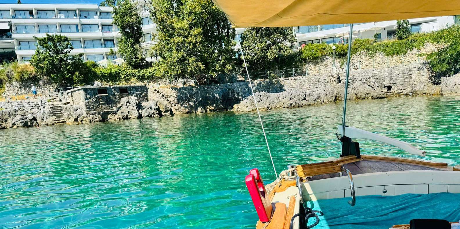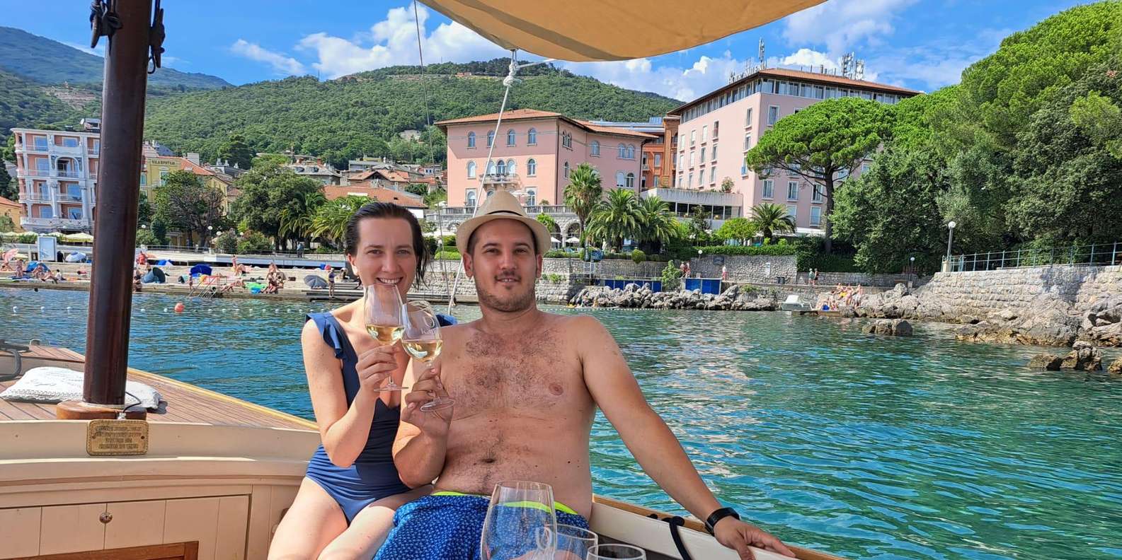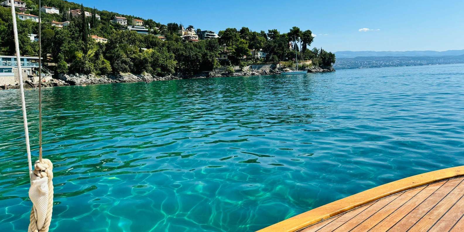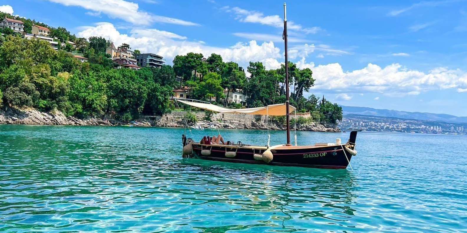 Mach eine Fahrt auf einem traditionellen kroatischen Holzboot entlang der Riviera von Opatija mit einem lizenzierten Guide, einem Glas Wein Malvazija und am Ende mit einem Polaroid-Foto als Erinnerung.