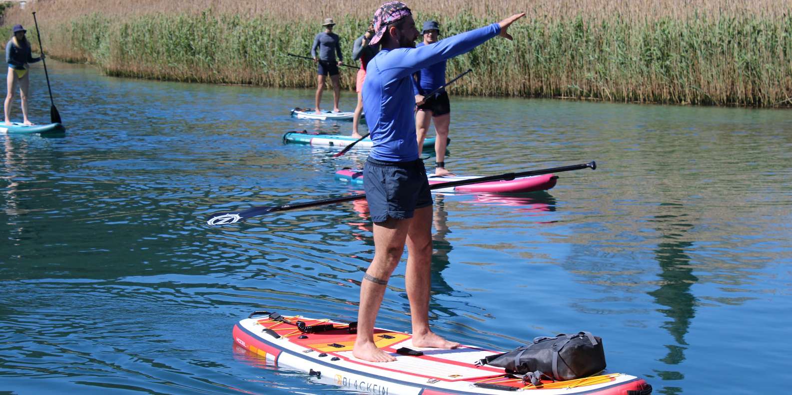Beginnen Sie mit einer Einführung in das Paddleboarding, damit sich alle sicher fühlen, bevor es losgeht. Während Sie über das ruhige Wasser gleiten, genießen Sie die atemberaubende Landschaft, während Ihr Guide Ihnen faszinierende Einblicke in die Umgebung gibt.