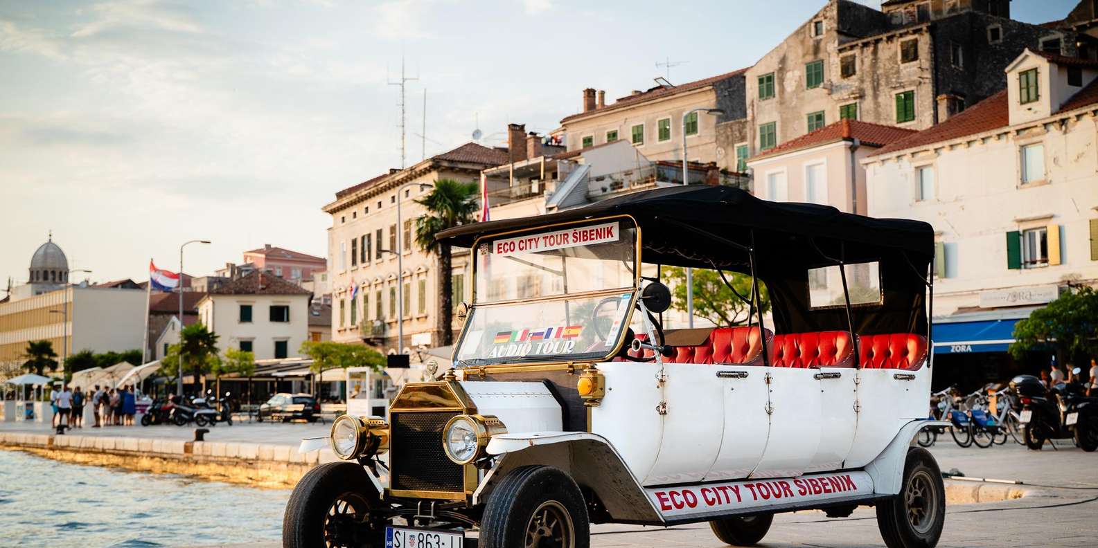 45 Minuten offene Fahrt durch die Altstadt von Šibenik in einem Retro-Elektrofahrzeug.