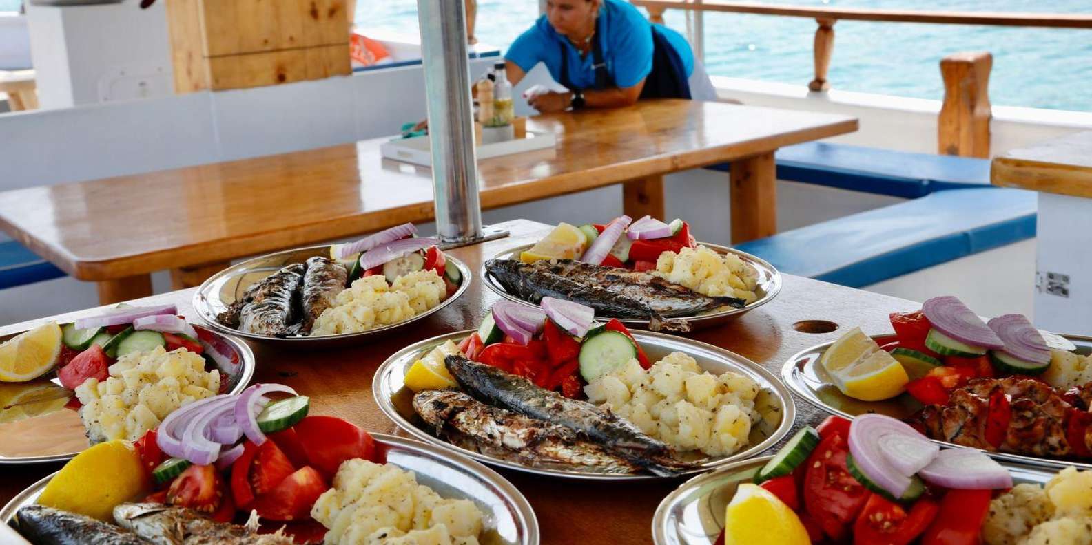 Während der gesamten Fahrt gibt es unbegrenzt Wasser und drei Freigetränke deiner Wahl (Softdrinks, Saft, Wein, Ouzo, Bier oder Cocktails).