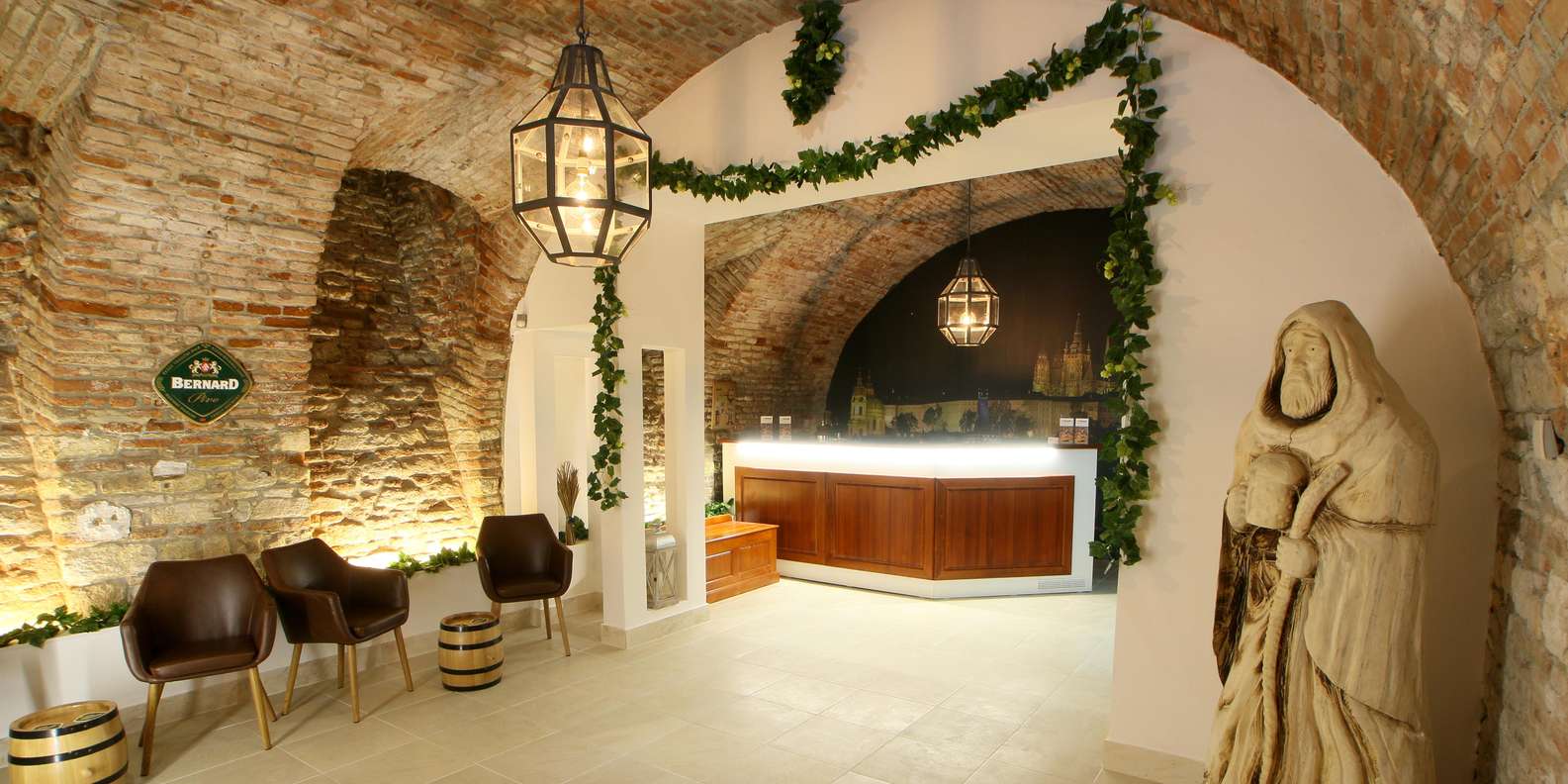 - - Das Bernard Bierbad befindet sich in einem Hotel. Im Inneren findest du die Rezeption des Bierbads.
