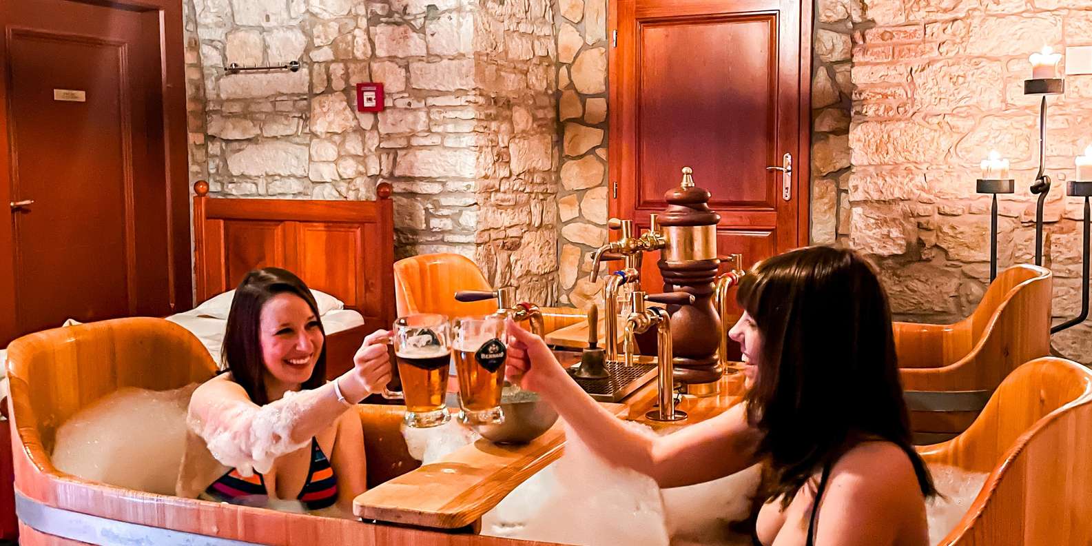 Bei deiner Ankunft wirst du vom Spa-Personal durch die Anlage geführt. Nimm ein Bad in einer privaten Bierwanne für zwei Personen und trinke dabei unbegrenzt Bier von Bernard. Danach kannst du dich auf einem beheizten Bett entspannen und dabei natürlich noch mehr Bier trinken. In den privaten Zimmern kannst du dich auf ein einzigartiges Erlebnis mit Freunden, deiner oder deinem Liebsten oder in einer Wanne ganz für dich allein einstellen.