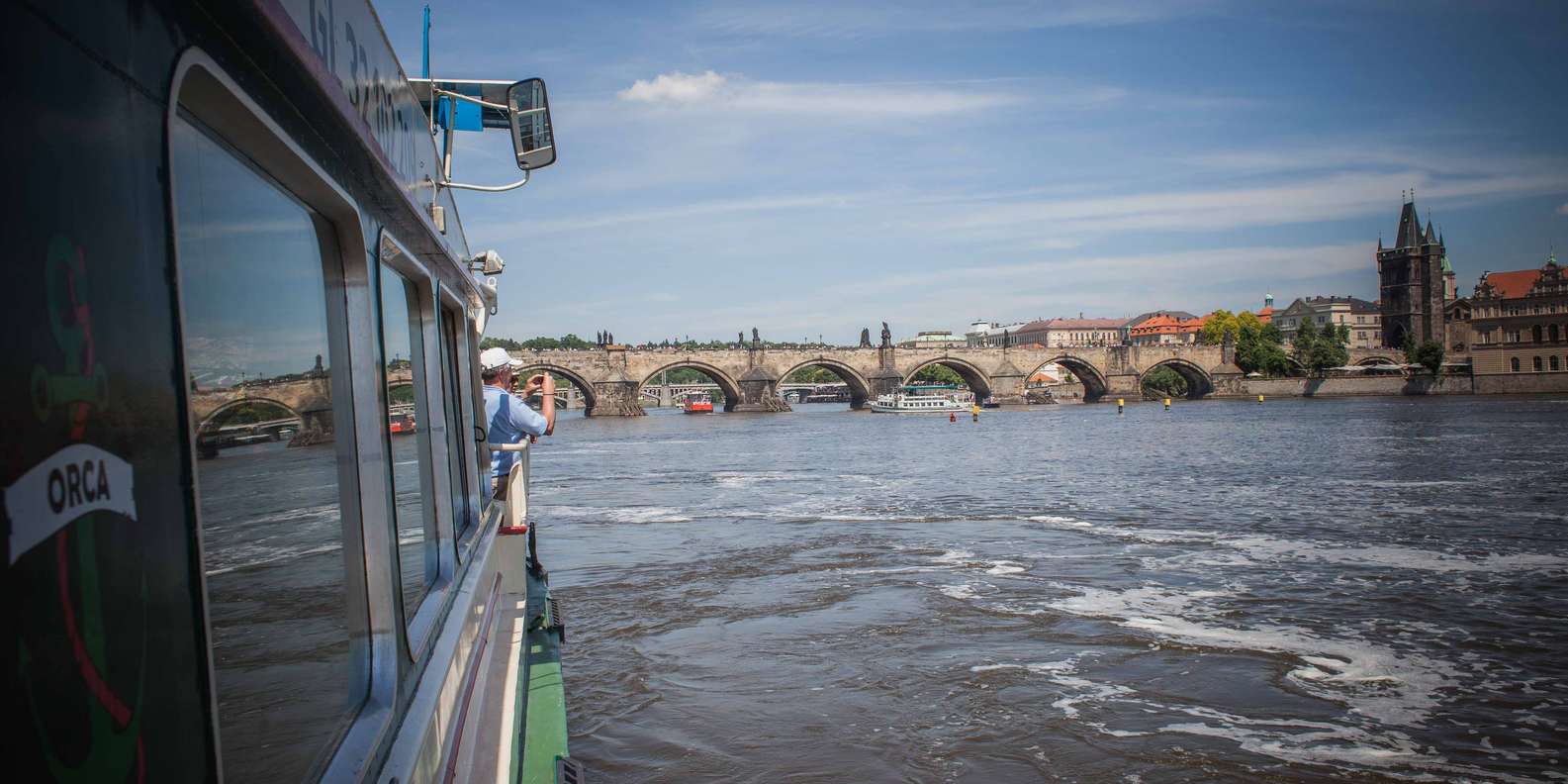 Erlebe die Wahrzeichen Prags von der Moldau aus bei einer Sightseeingtour mit dem Boot. Steig in ein historisches Boot und fahre mit einem kühlen Bier oder einem Glas Wein in der Hand den Fluss entlang.